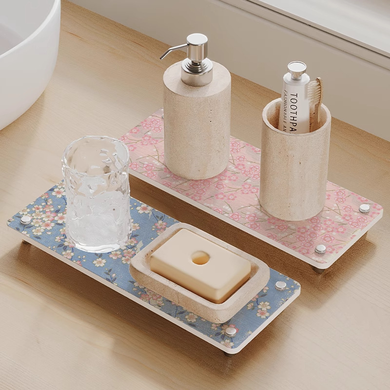 洗手台置物架硬硅藻泥台面吸水垫洗漱台速干洗手盆牙刷架漱口杯垫