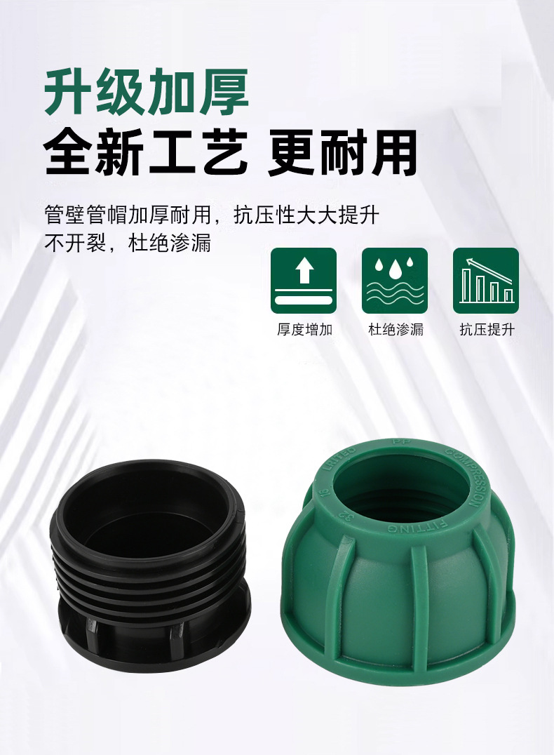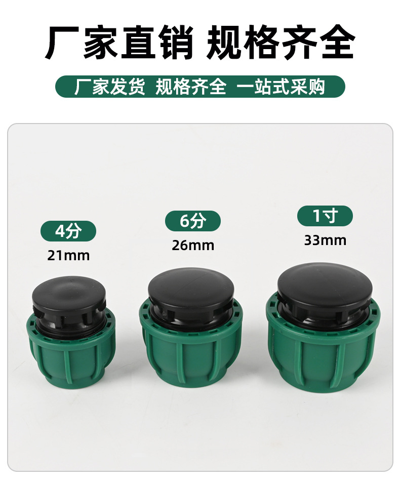 产品规格 【升级绿帽】pe堵头4分,【升级绿帽】pe堵头6分,【升级绿帽】pe堵头1寸