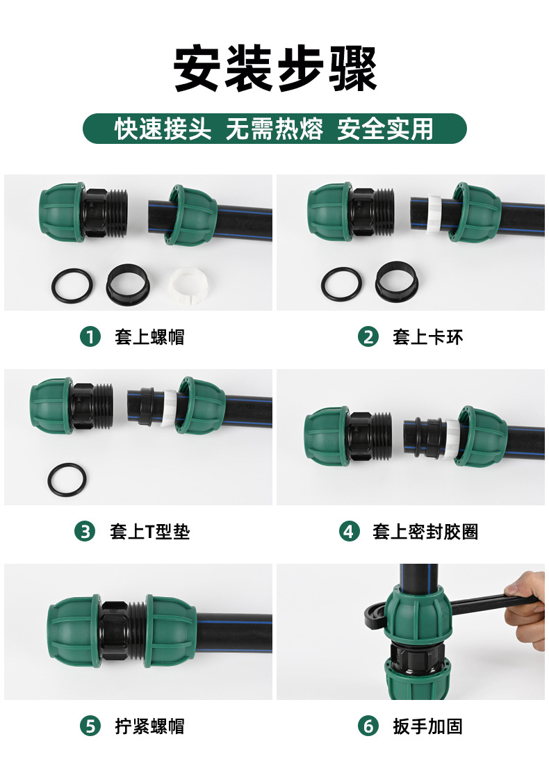 Pe水管継手三方快速活継手4分6分1インチ無熱融着修理快接継手プラスチック活接