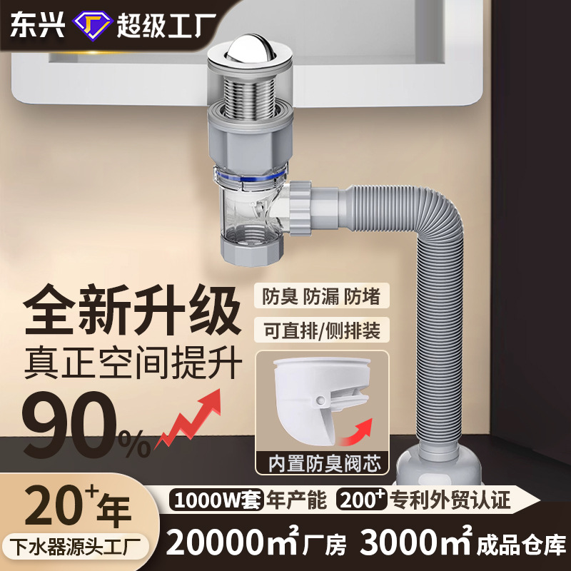 洗脸盆下水器阳台浴室柜面盆下水管全套带防臭阀芯翻板排水管套装
