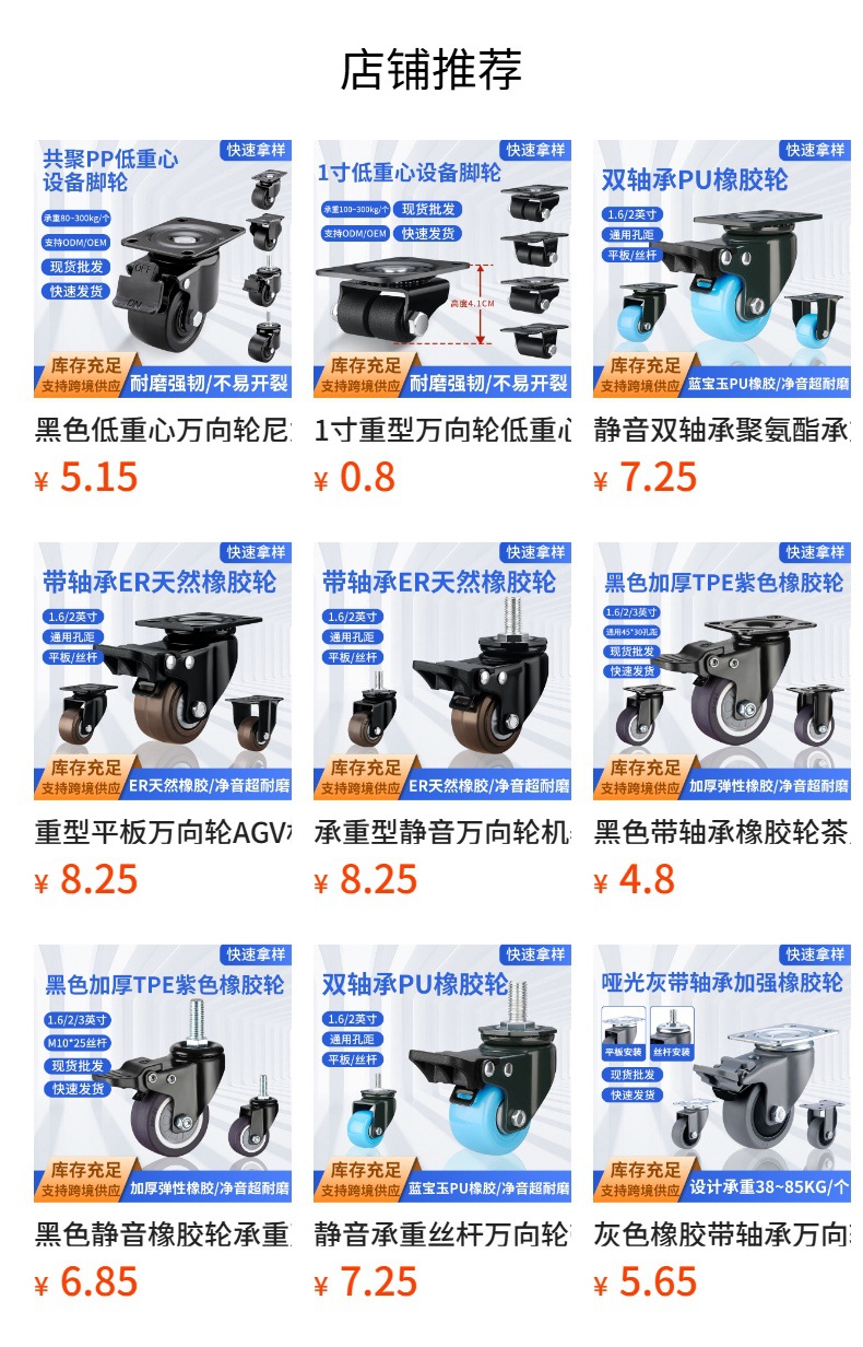 榻榻米抽屉隐形床头抽拉柜滑动轮静音橡胶定向轮脚轮柜子底部轮子
