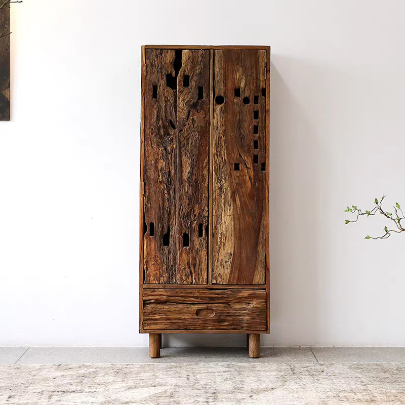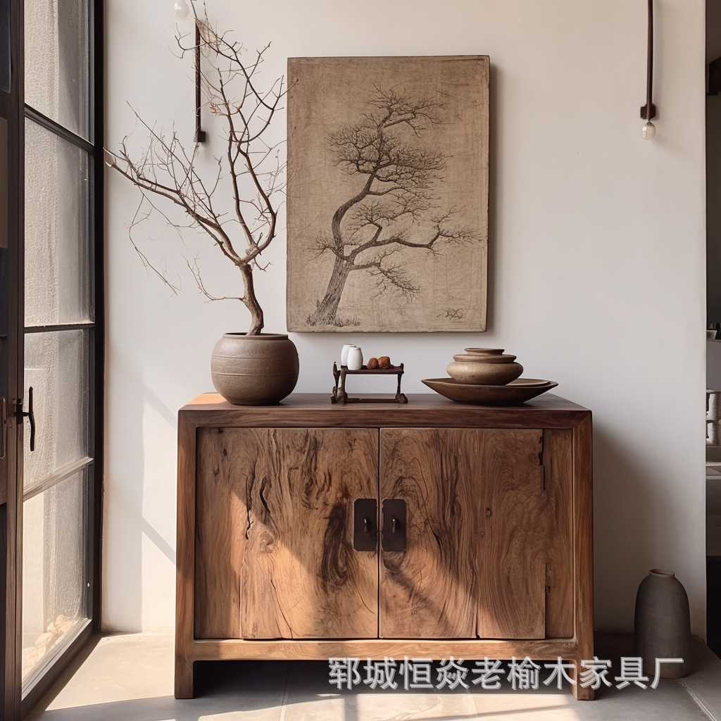 侘寂风实木储物柜民宿客栈老榆木复古收纳柜茶室茶叶展示柜立柜