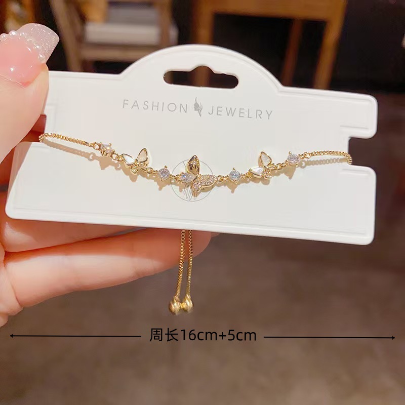 ライトラグジュアリー、シンプルで甘いバタフライジルコン引き出しブレスレット、個性、新鮮でユニーク、ハイエンド、多用途のハンドジュエリー卸売
