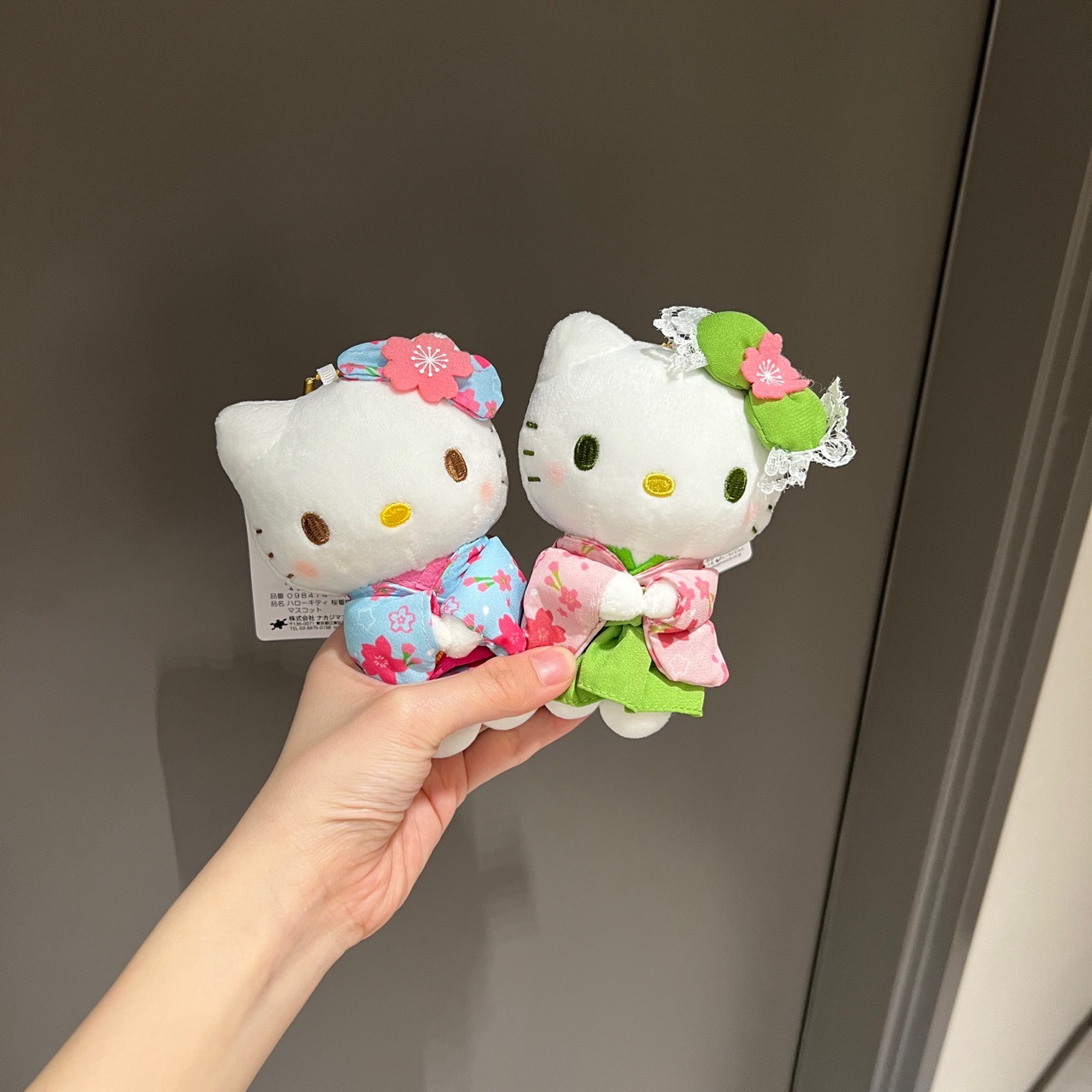 日本式の青い桜の着物ハローキティのペンダントが可愛いぬいぐるみのハローキティのペンダントです。