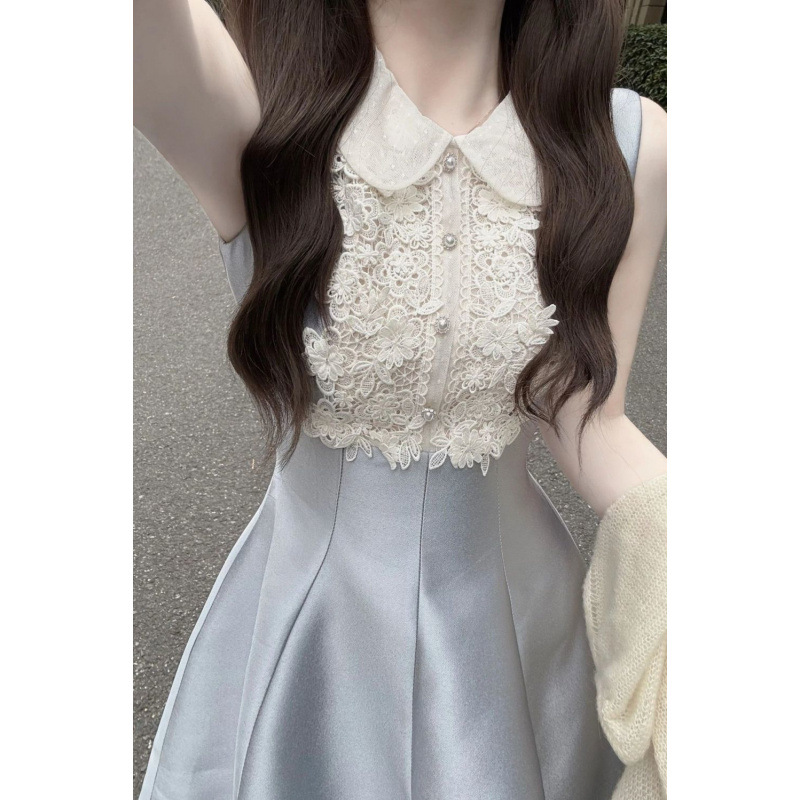 スイートミュウ娘風ドールカラーノースリーブドレス夏新作レースウエストAライン誕生日ドレス