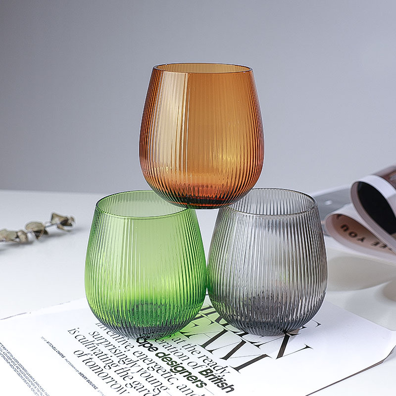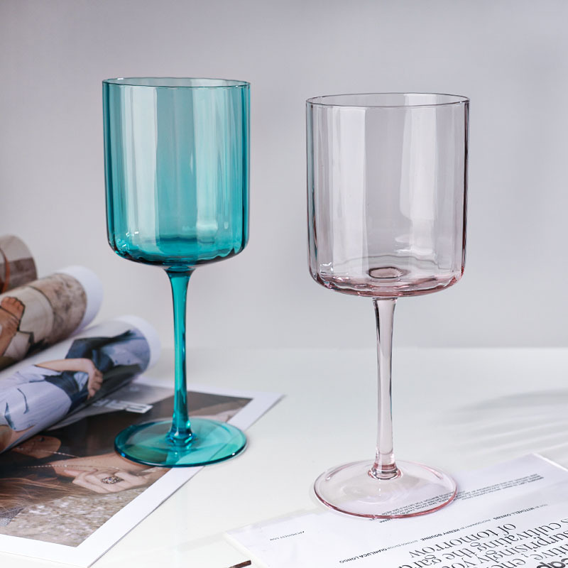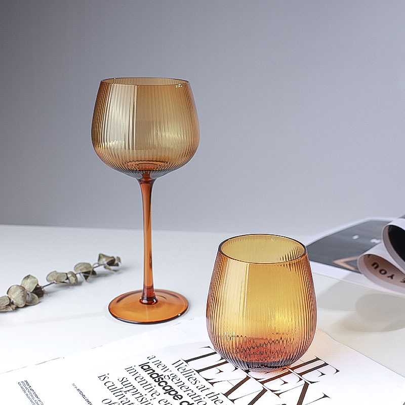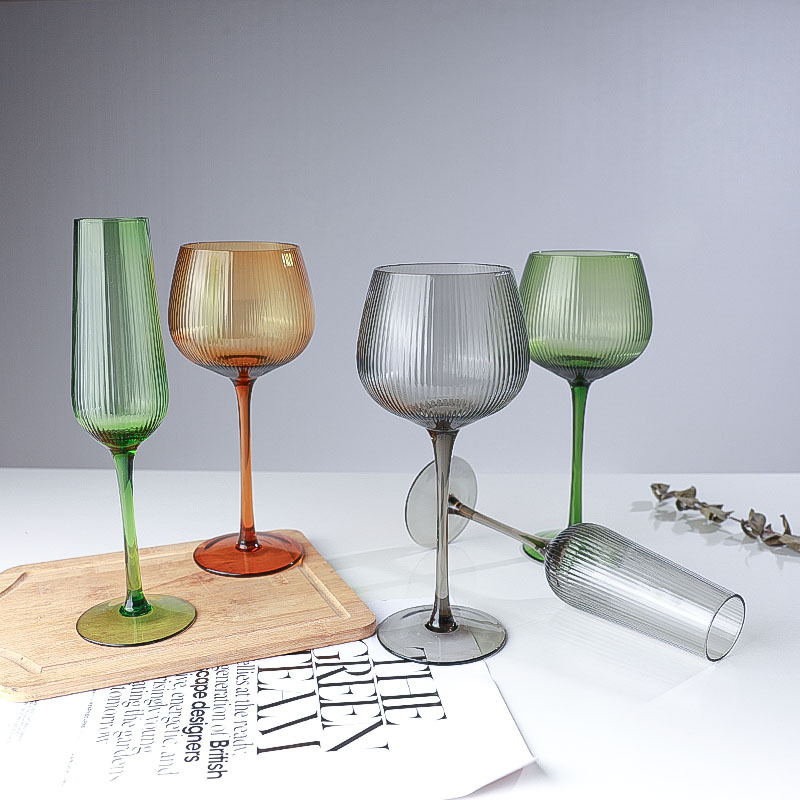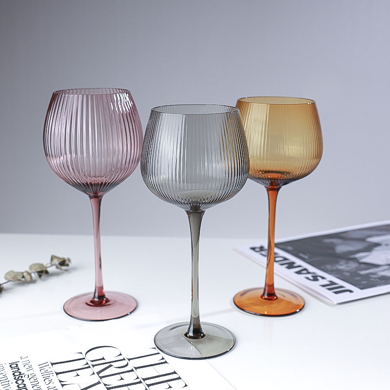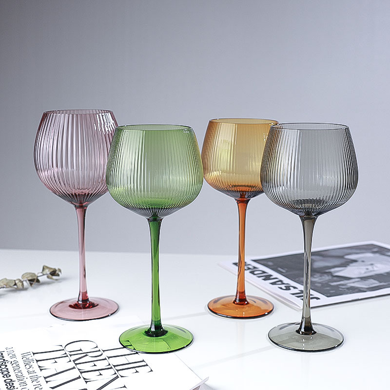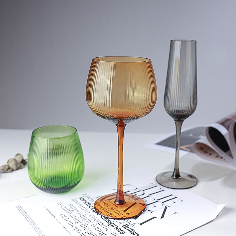 工場直販オリジナルカラーのカラフルな手吹き縦模様クリスタルガラス赤ワイングラス/シャンパングラス/ウォーターグラスセット