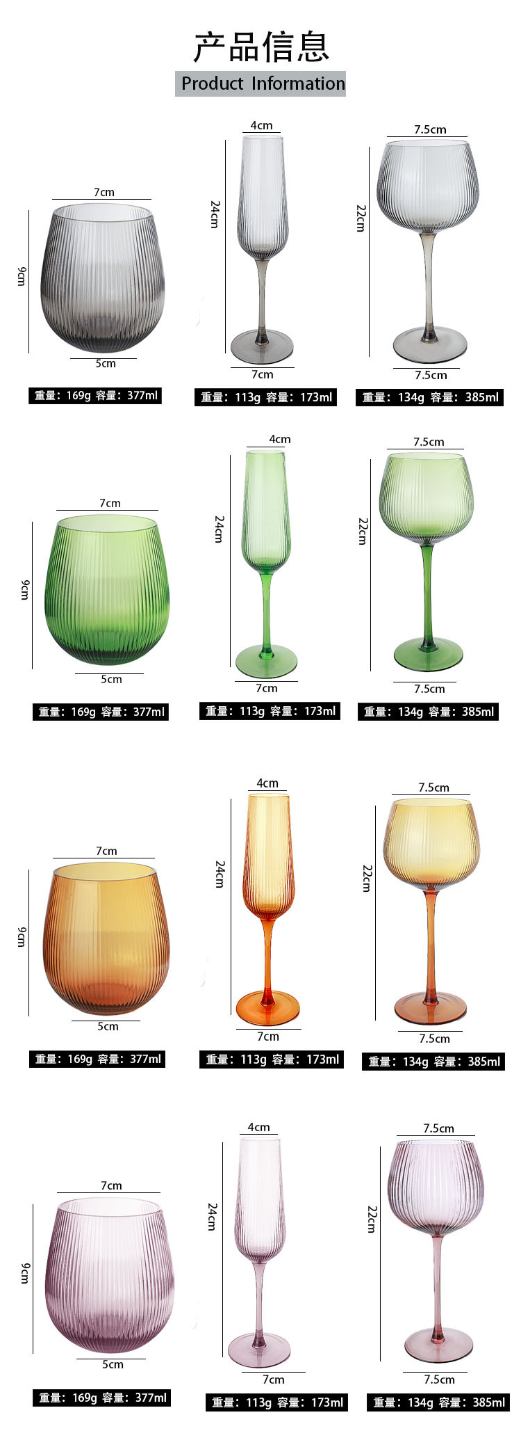 颜色 粉色原色料竖纹口杯,粉色原色料竖纹香槟杯,粉色原色料竖纹红酒杯,琥珀原色料竖纹口杯,琥珀原色料竖纹香槟杯,琥珀原色料竖纹红酒杯,烟灰原色料竖纹口杯,烟灰原色料竖纹香槟杯,烟灰原色料竖纹红酒杯