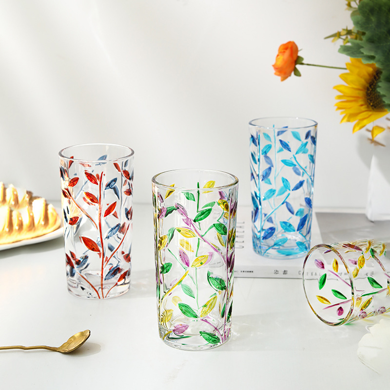 新型高颜値創意彩色木の葉カップ家庭用グラス大容量カップジュースカップ現物卸売り
