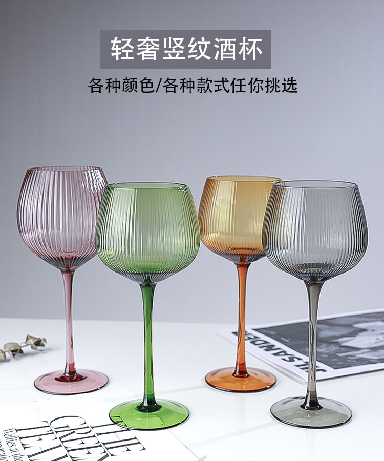 プリズムスレッド赤ワイングラス背の高いクリスタルガラス北欧家庭用ブルゴーニュビッグベリーワイングラスシャンパングラス