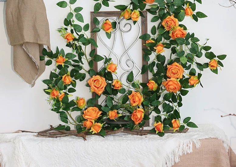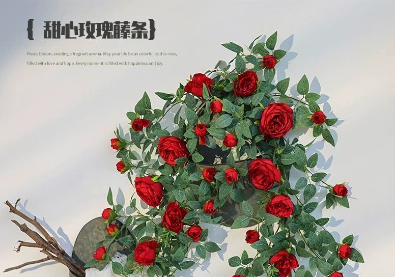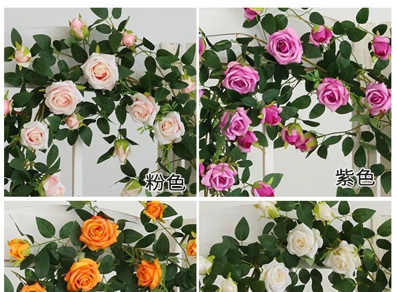 仿真玫瑰花藤花墙假花装饰花藤条空调管道遮挡店铺造景庭院装饰