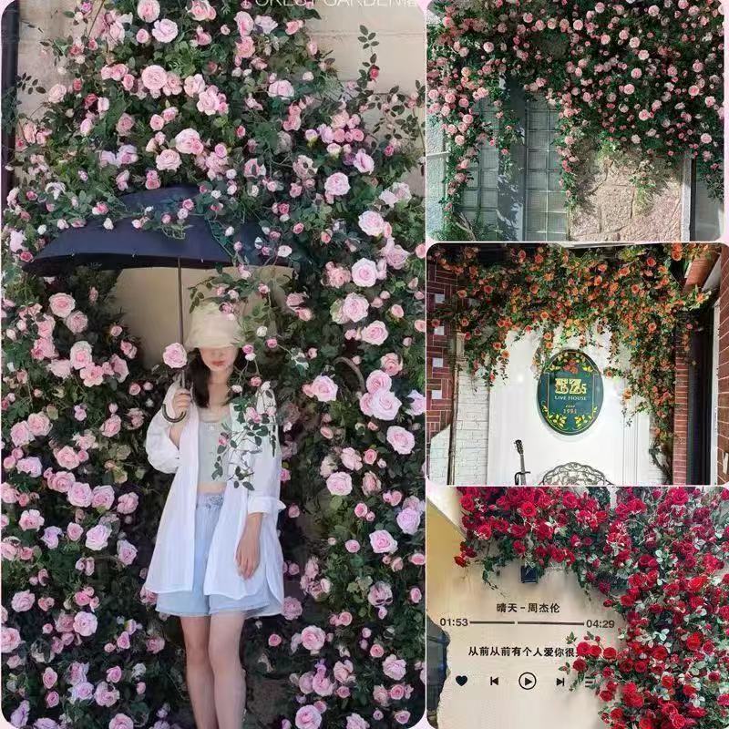 仿真玫瑰墙假花 婚礼布置玫瑰瀑布背景墙情人节花墙装饰网红打卡
