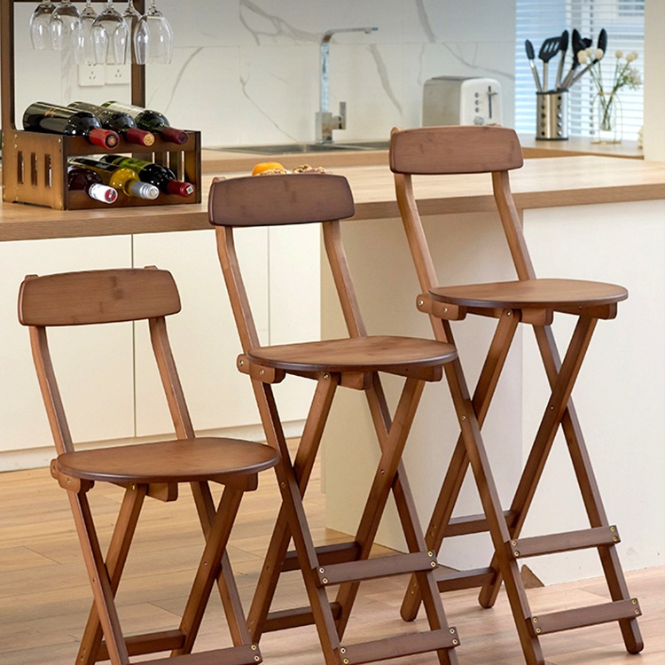 家庭用折り畳み可能な現代シンプルなカウンター椅子高足椅子実木バー椅子レストラン日本式楠竹背もたれ椅子