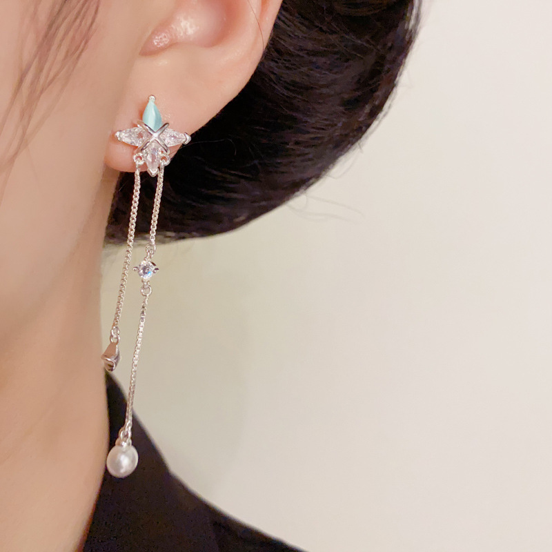 ニッチなファッションデザインの厚いシルバー星パールタッセルイヤリング女性用、軽い高級感と多用途のイヤリング卸売