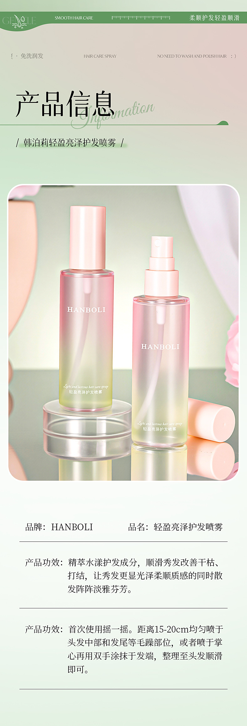 产品名称 HANBOLI轻盈亮泽护发喷雾