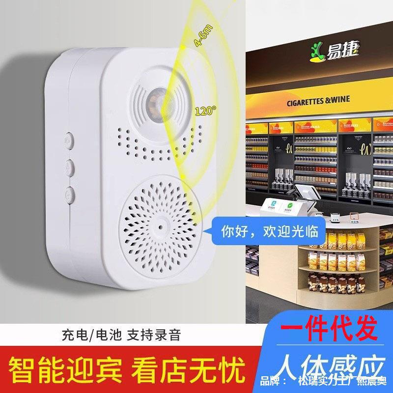 店舗に入る際のウェルカムセンサー、スーパーマーケットの入店、ウェルカムドアベル、コントロールおよび予防音声プロンプターの録音