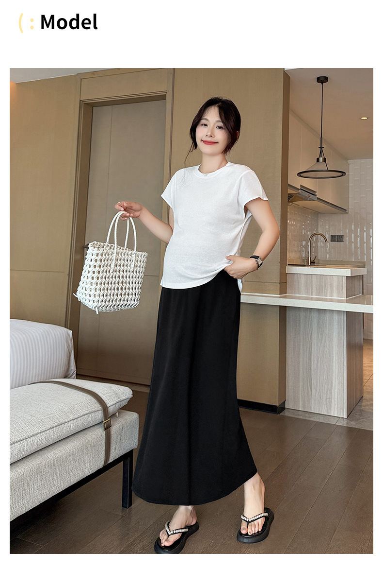 【氷感キュプラシルク】夏用薄手マタニティナローワイドパンツ、ゆったりお腹サポートなしストレートマタニティパンツ