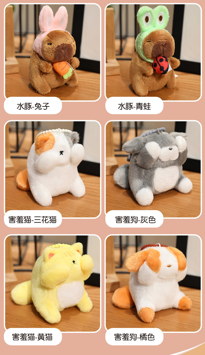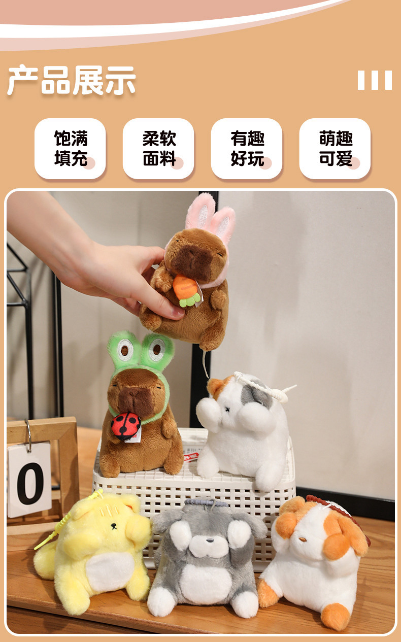 面白い猫と犬のカピバラペンダントぬいぐるみ人形