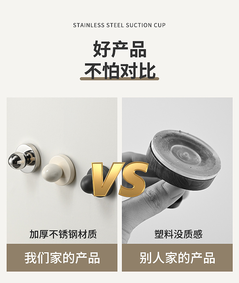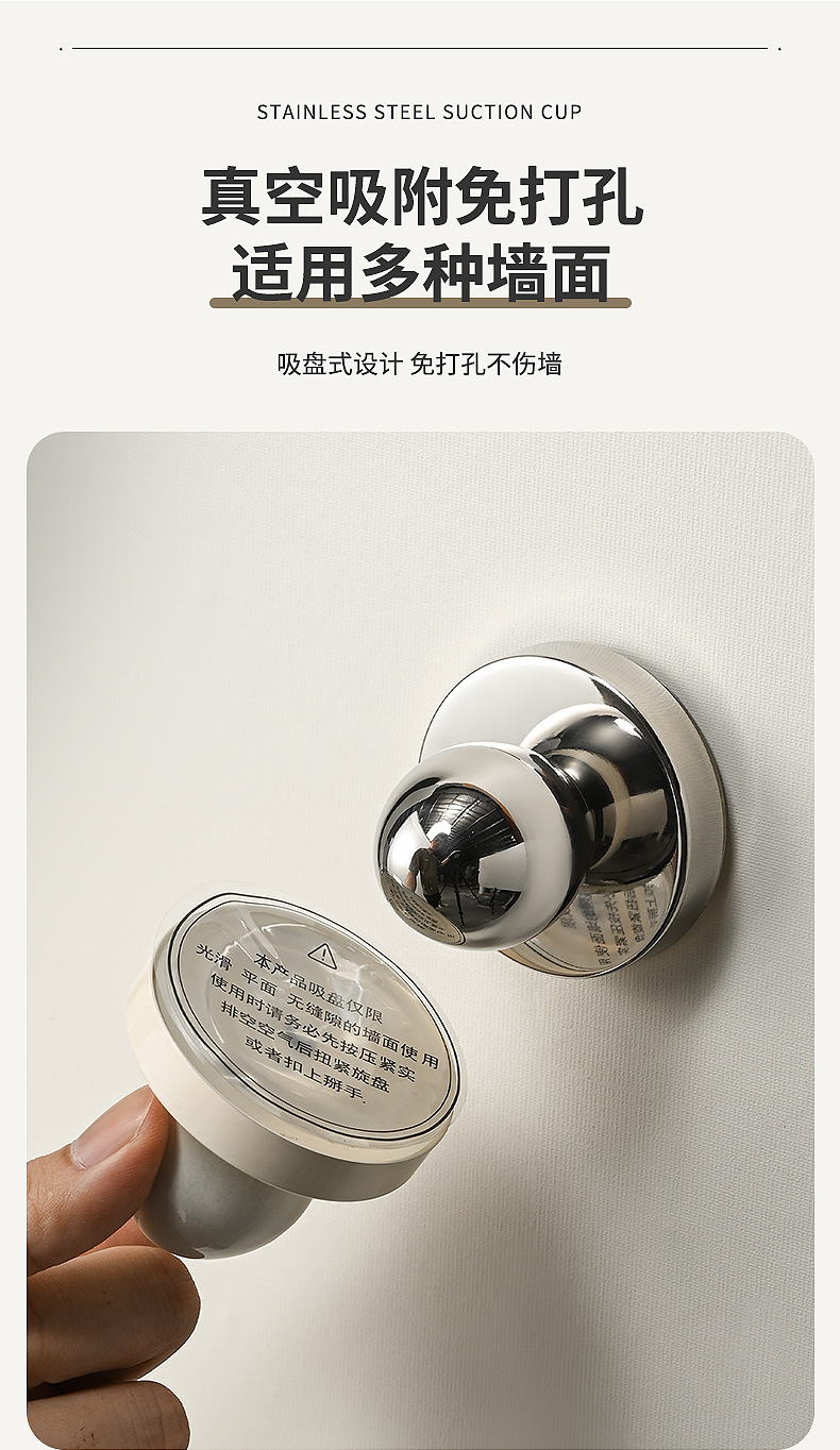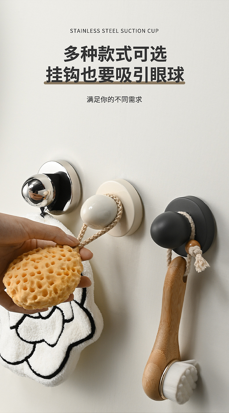 创意不锈钢吸盘挂钩拉手免打孔浴室毛巾衣帽粘钩贴门后挂衣架墙上