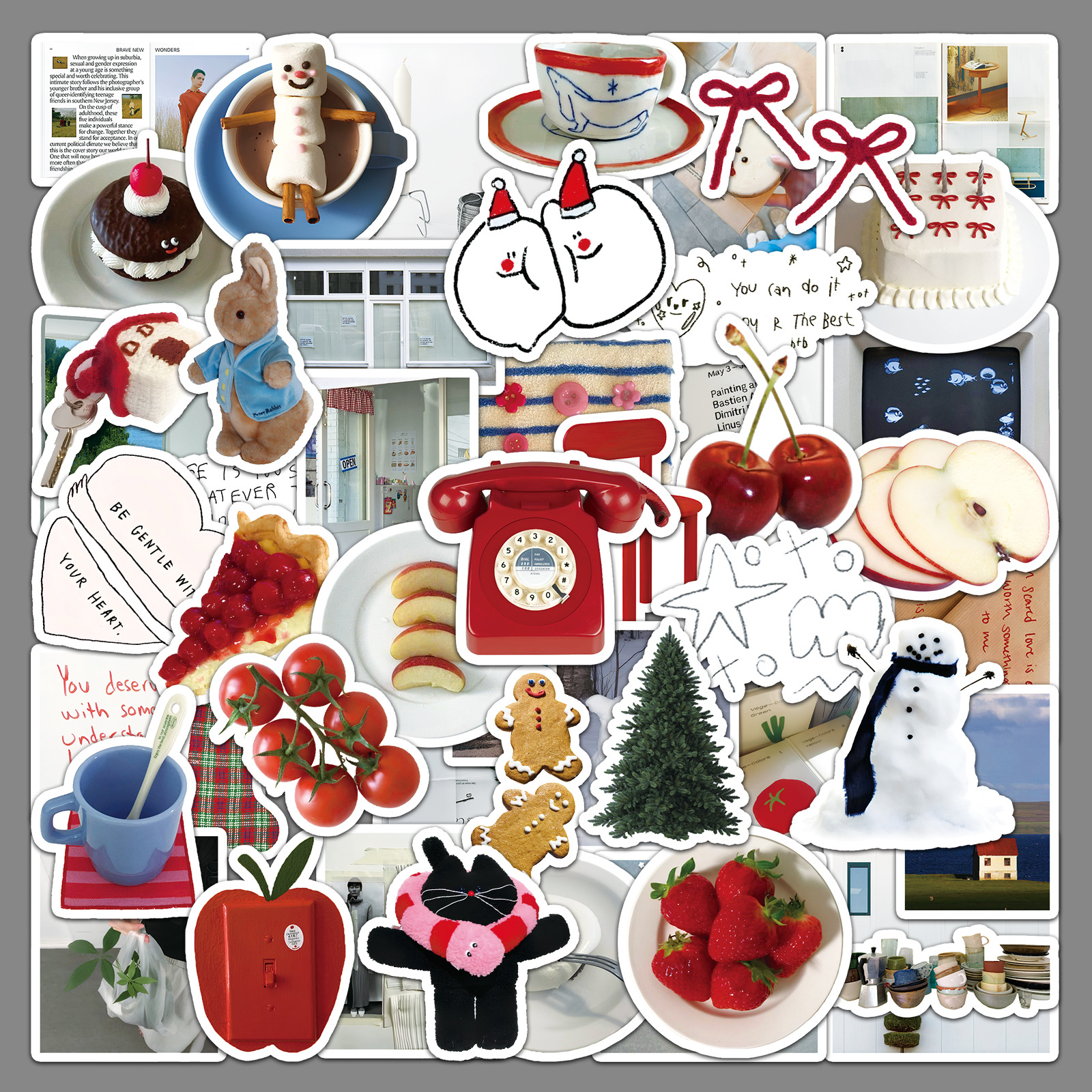 50枚クリーム韩系INS风ステッカー漫画DIY高级感彩絵手帳装饰携帯ノートDIY