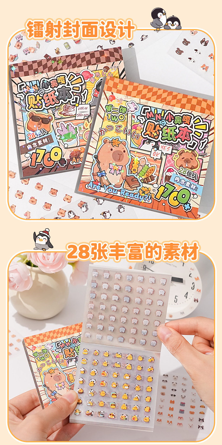 ミニチュアシーンコレクション、造園ステッカー、カピバラハンドブック、装飾素材、減圧ステッカー、女の子ギフト