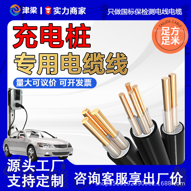 新エネルギー車充電用充電器ケーブル 3芯 6平方 7KW 電線 国家規格銅芯 屋外スイッチ電源ケーブル
