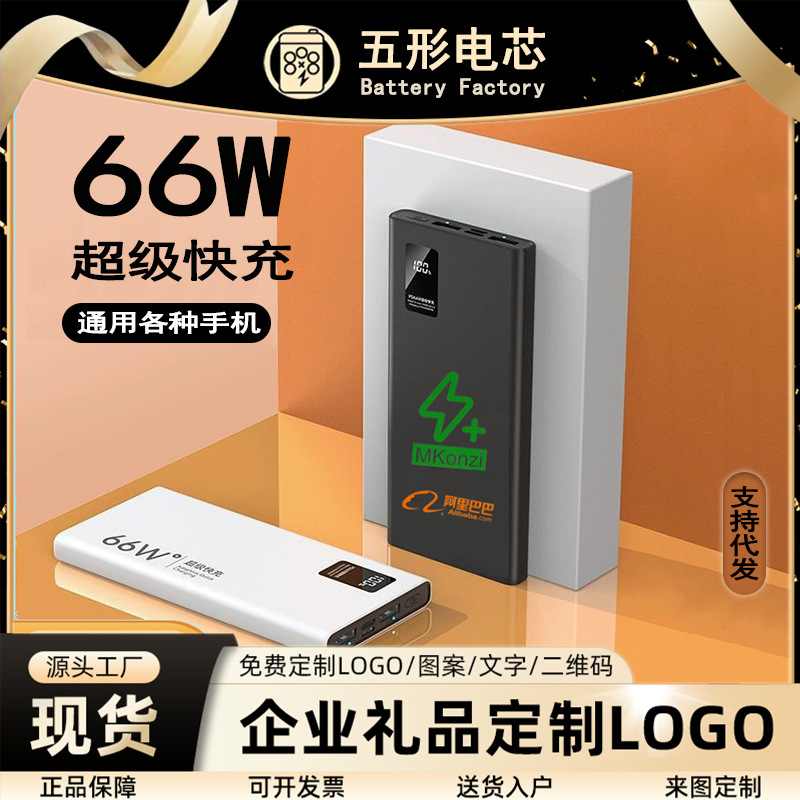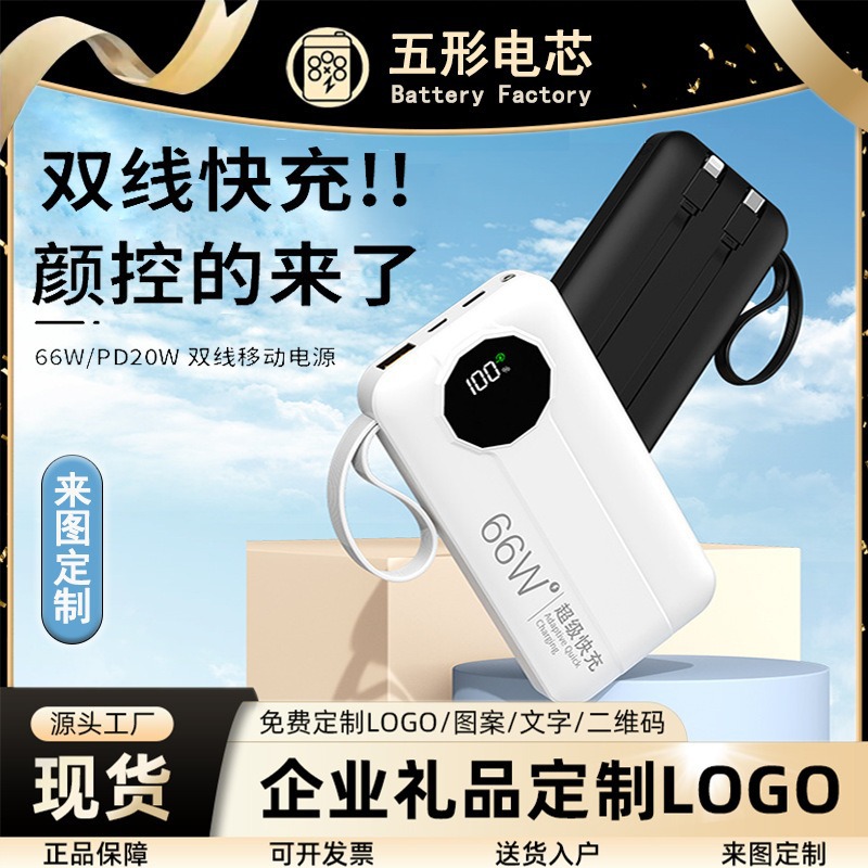 66W急速充電3C認証モバイルバッテリー大容量20000mAh内蔵ケーブル付きモバイル電源ギフトロゴ印刷