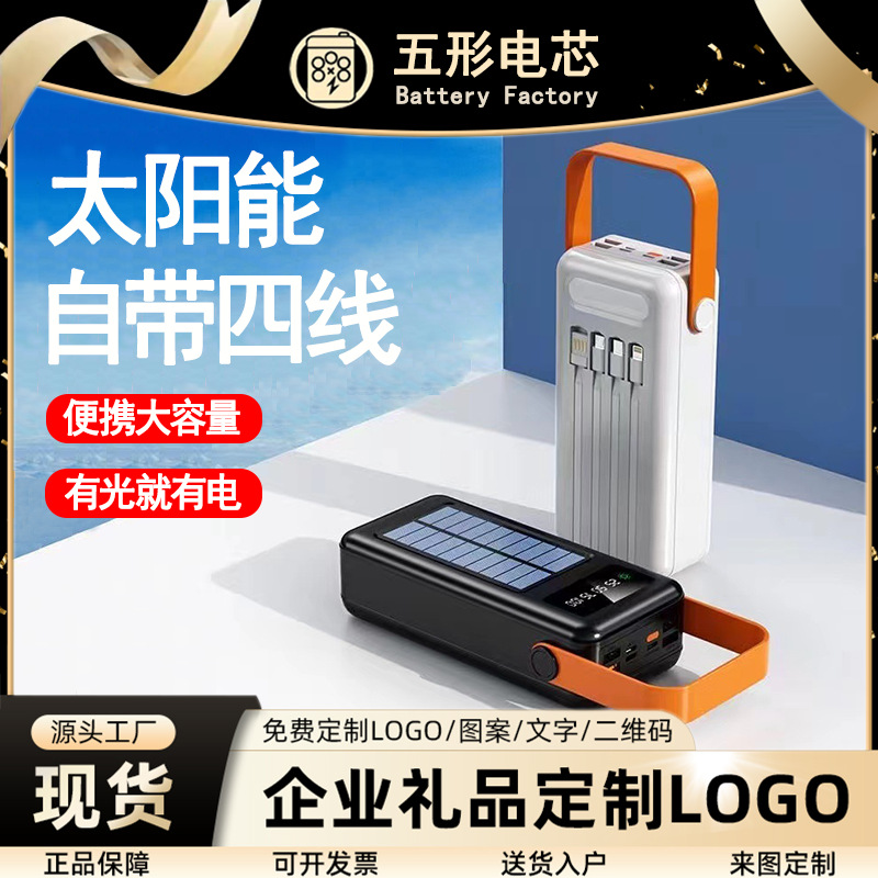 Power bankクロスボーダー太陽光充電宝60000ミリアンペア自帯線大容量移動電源カスタマイズ