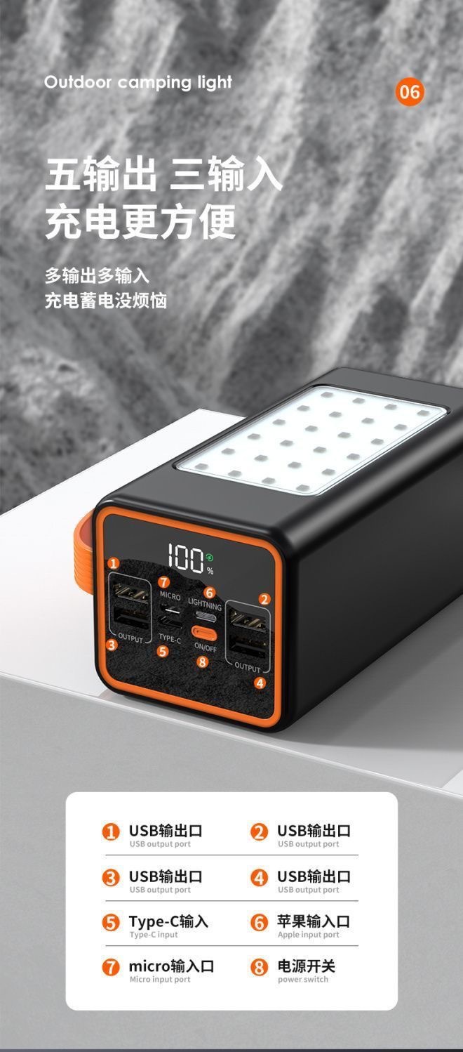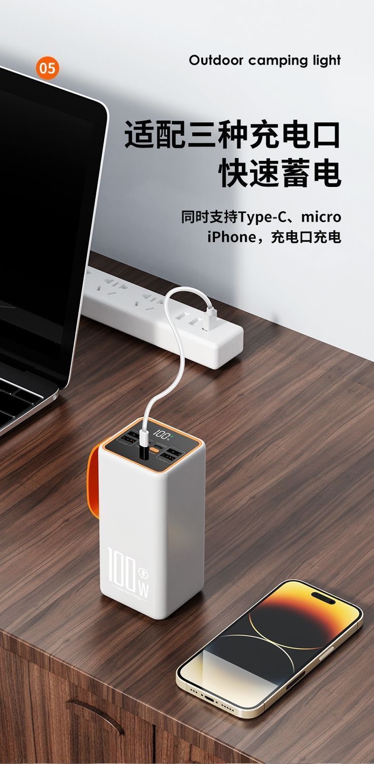 クロスボーダー充電宝50000ミリアンペア66W超高速充電大容量屋外キャンプ灯移動電源