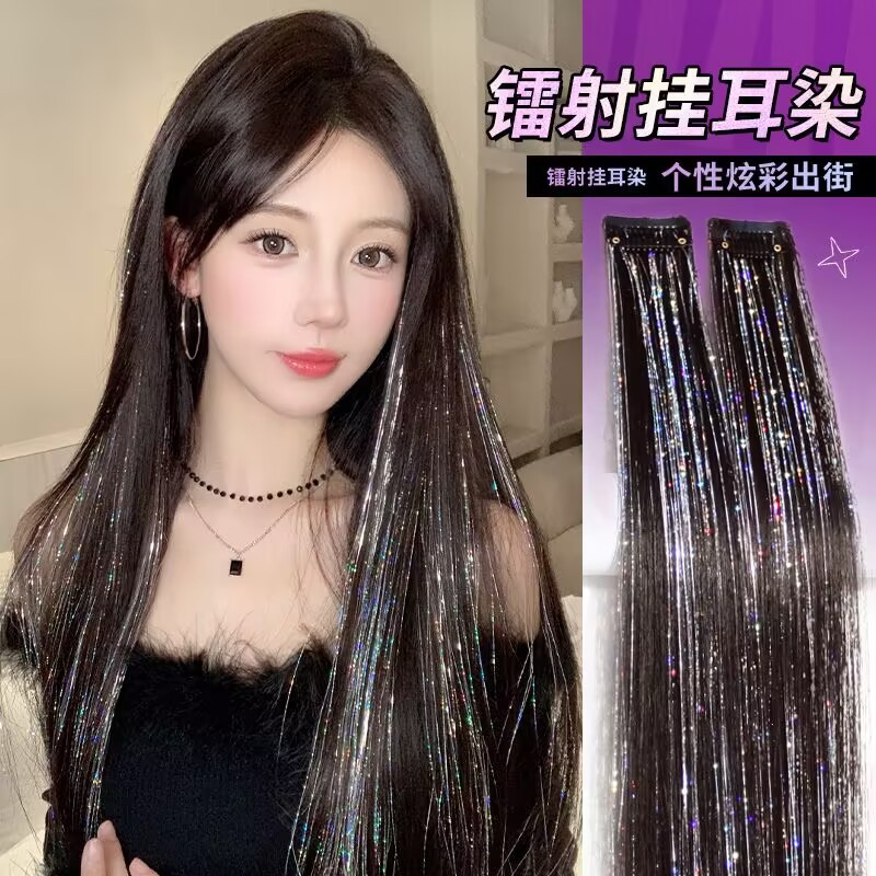 耳掛け染毛片かつら女長髪レーザー糸一枚式カラー髪片女団風無痕かつらシール