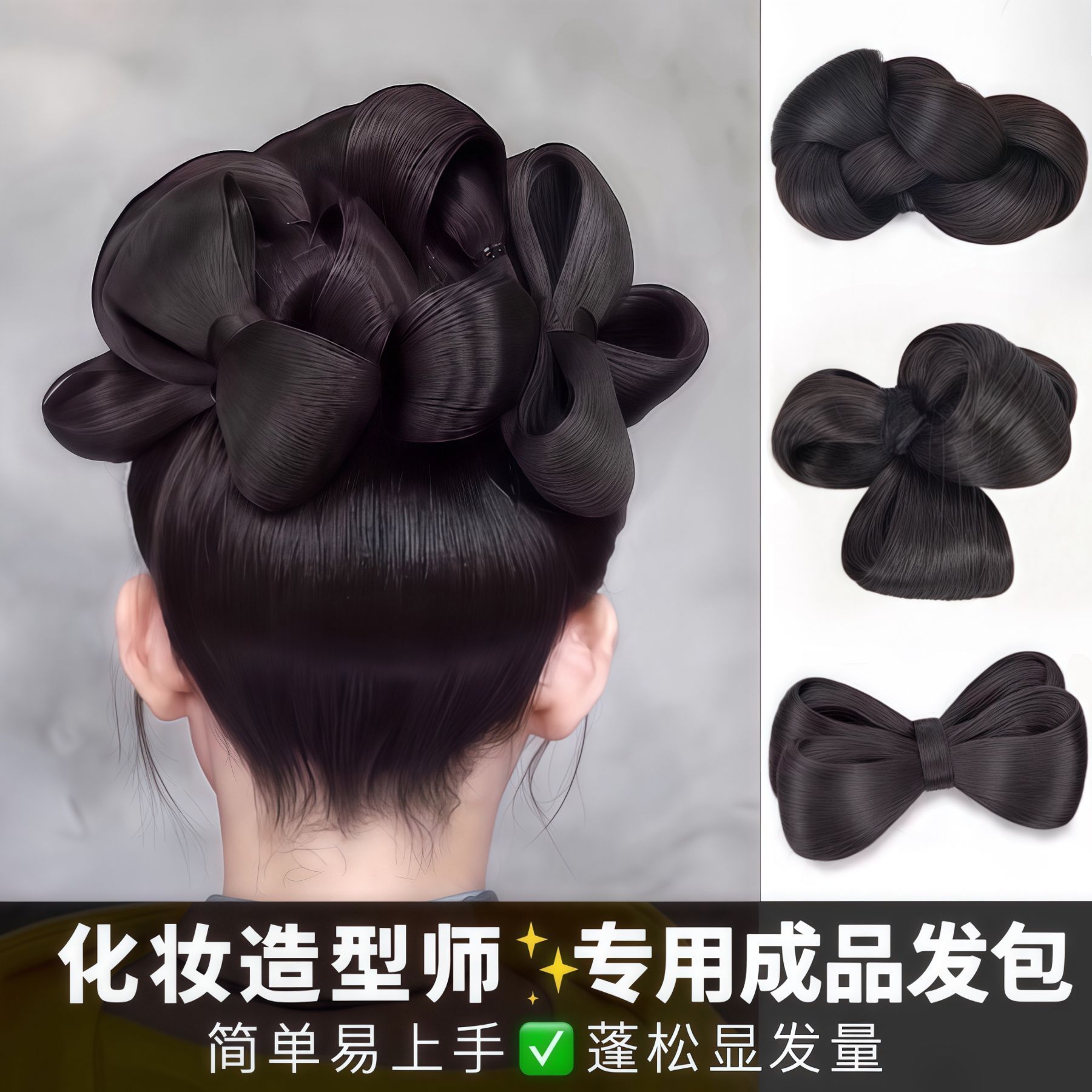 新中式蝴蝶发条丸子假发包新娘旗袍影楼花朵造型盘发神器发髻头饰
