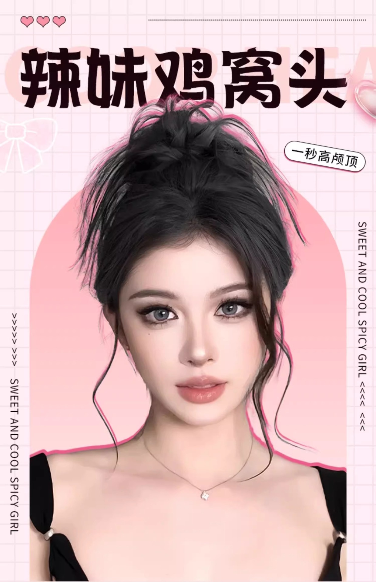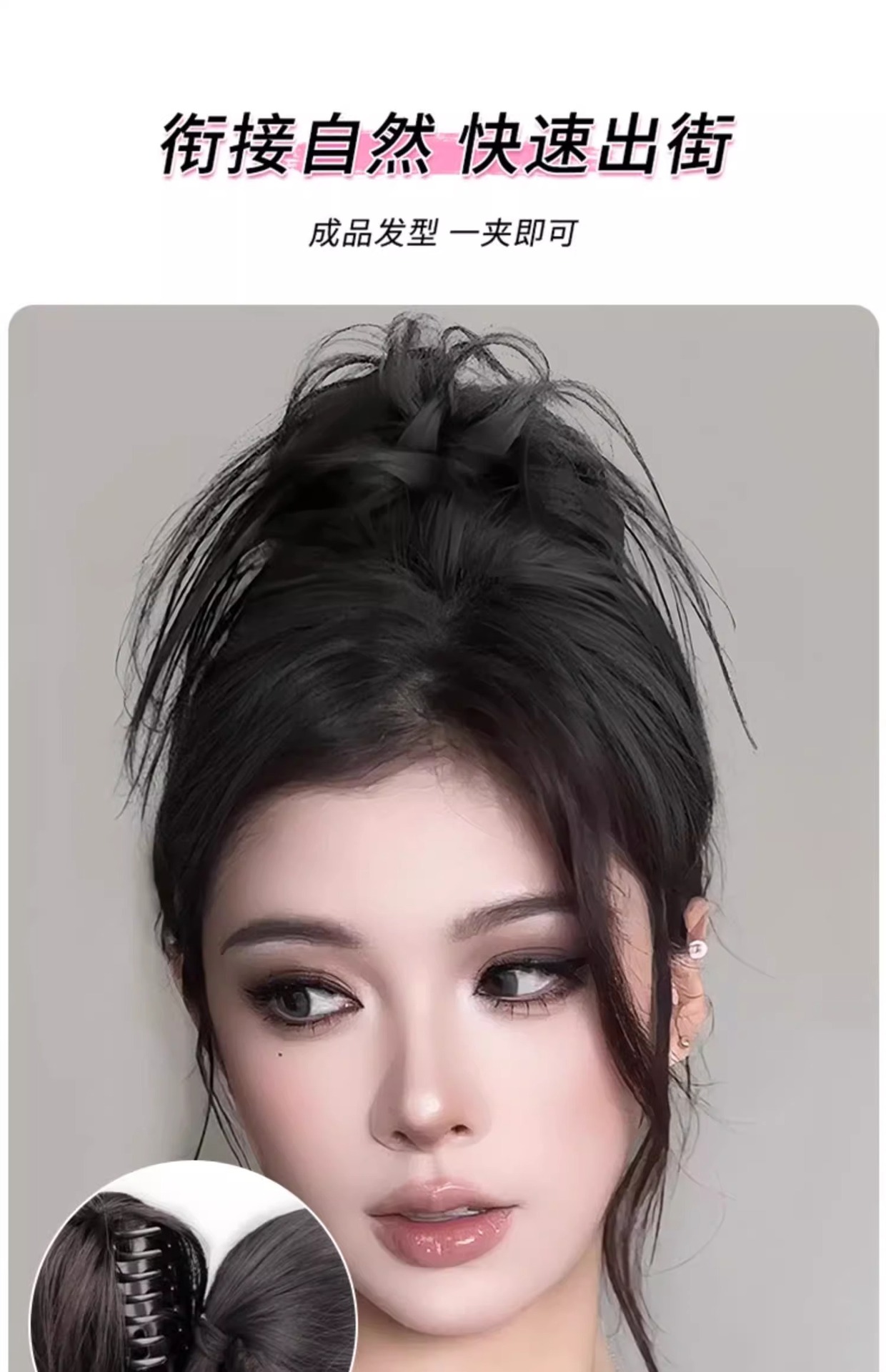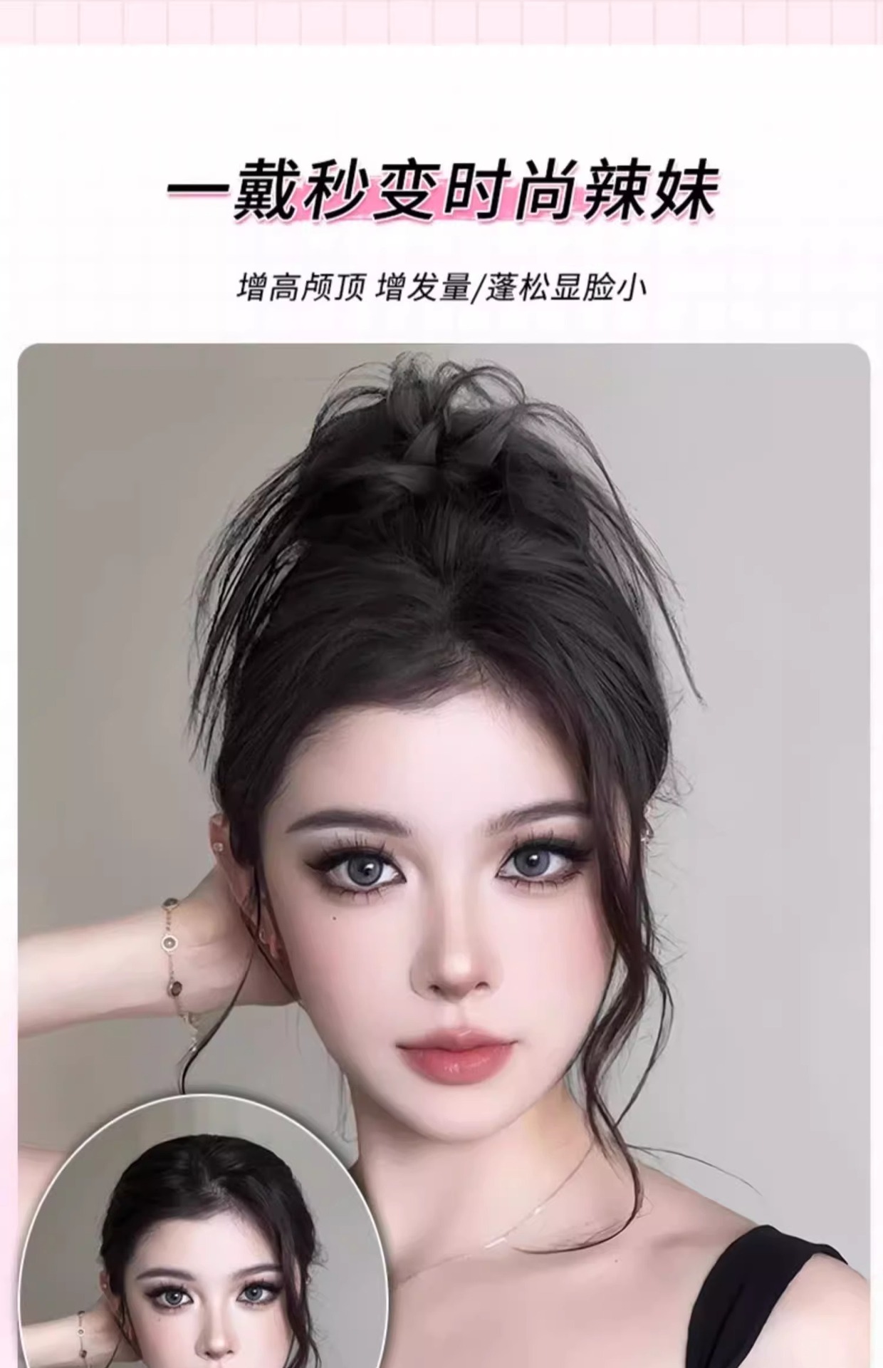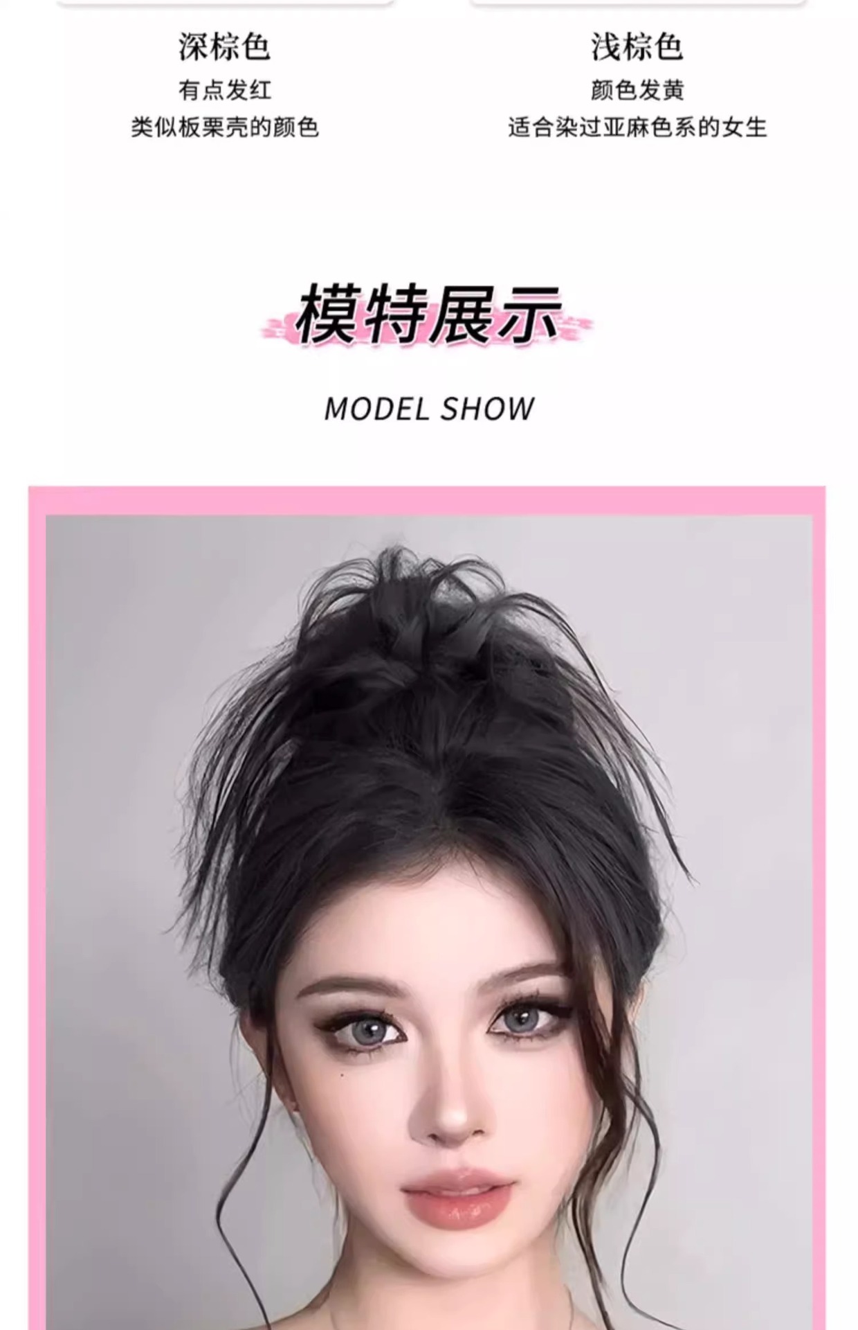 预制新中式手打卷发包汉服假发秀禾晨袍发型国风新娘盘发化妆造型