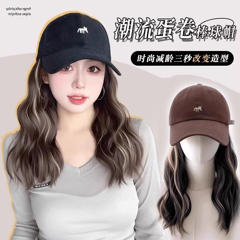 かつらの帽子の子供のファッションネットの赤い長い巻き髪は小さい狐の野球の帽子を染めて偽の髪の毛の一体の全身のカバー式を持ちます。