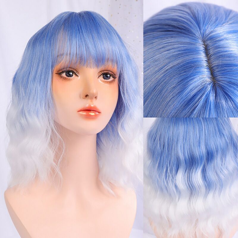 欧米風の女性の水の波紋のグラデーションの短いカールの化学繊維の高温の糸の斉の前髪のかつらの女性の頭のカバー