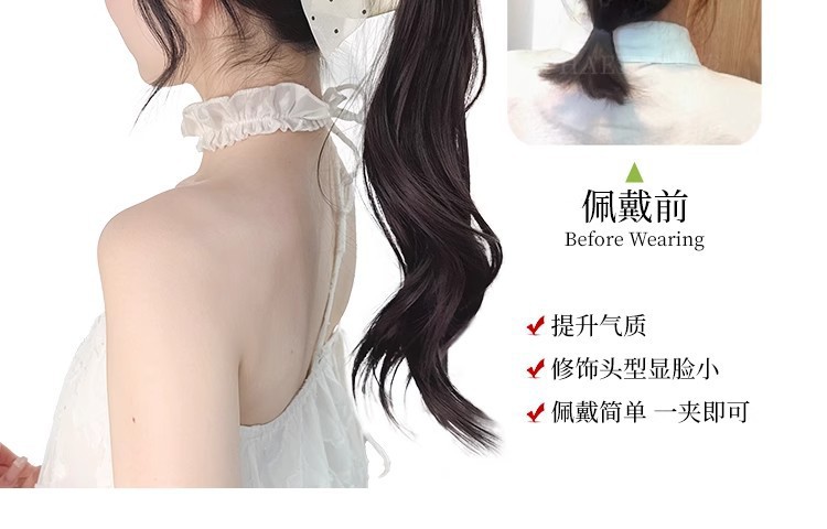 女性用ポニーテールクリップ、ハイポニーテール、自然な水玉模様のメッシュリボン巻き毛増量クリップ、ポニーテールヘアアクセサリー