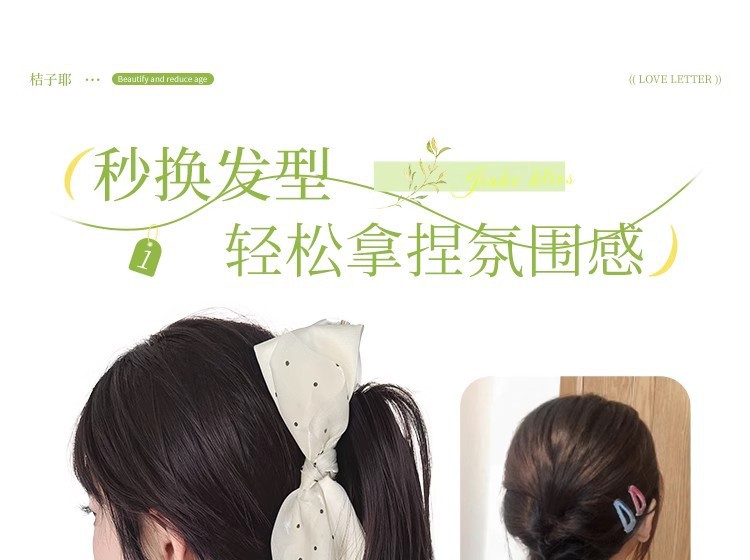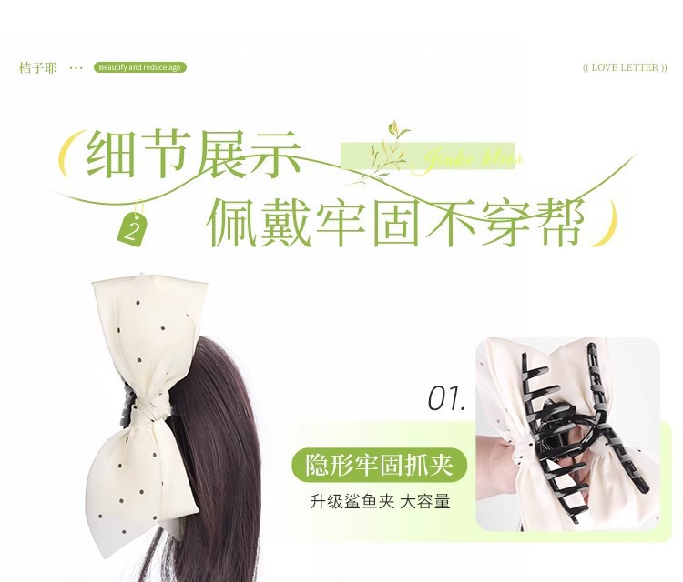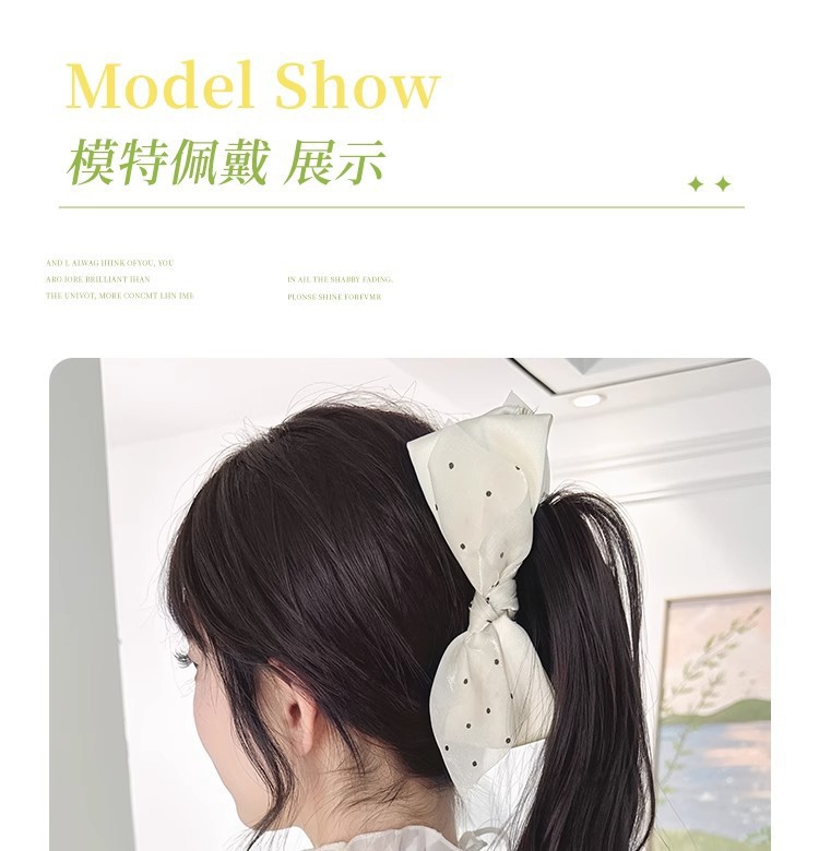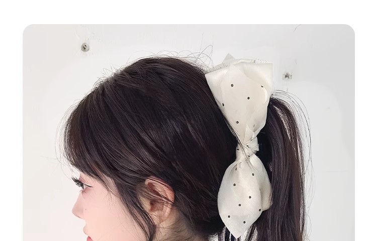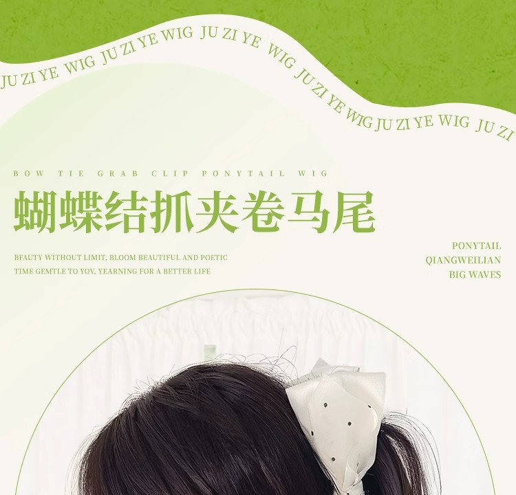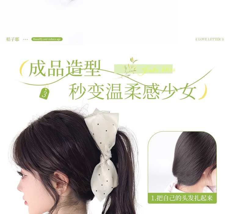 工場の現物は韓国系の波点網の蝶結びで、ポニーテールのかつらを挟んでいます。