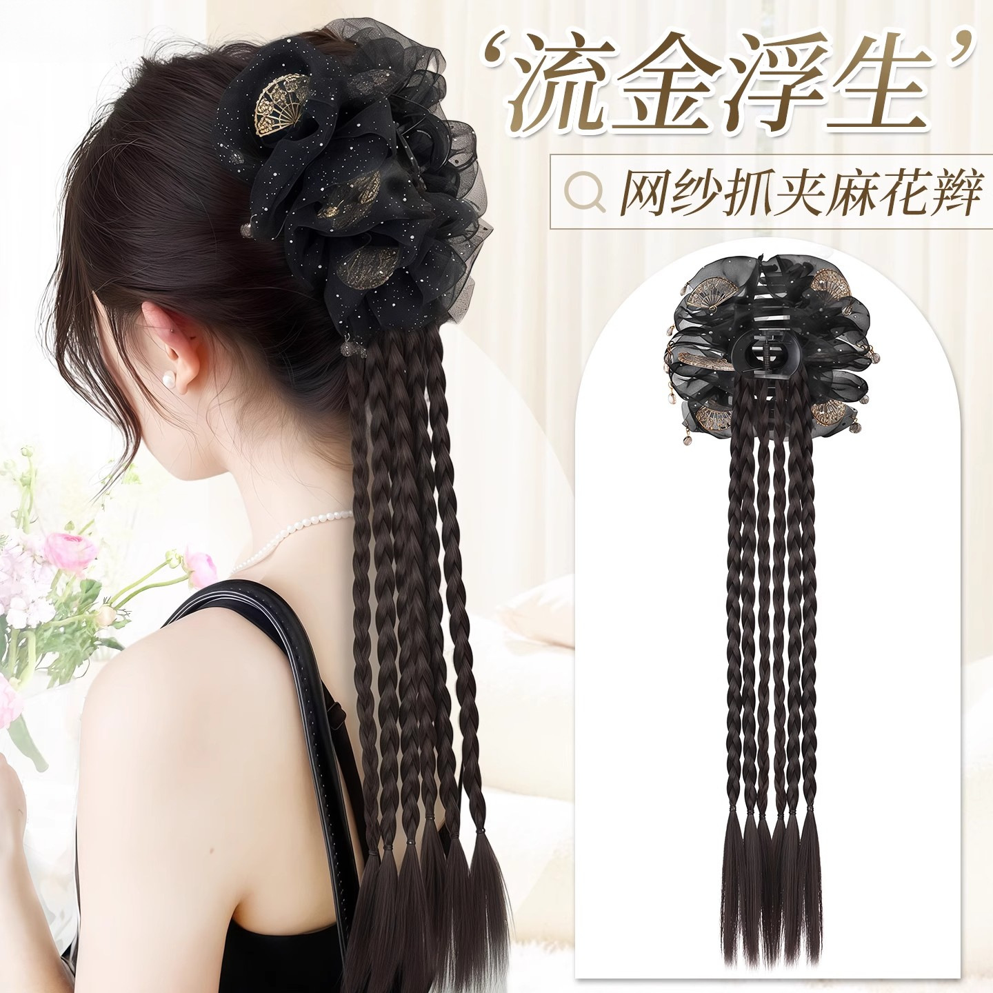 假发辫子女蕾丝抓夹气质新中式麻花小辫长辫子发饰编发假发辫马尾