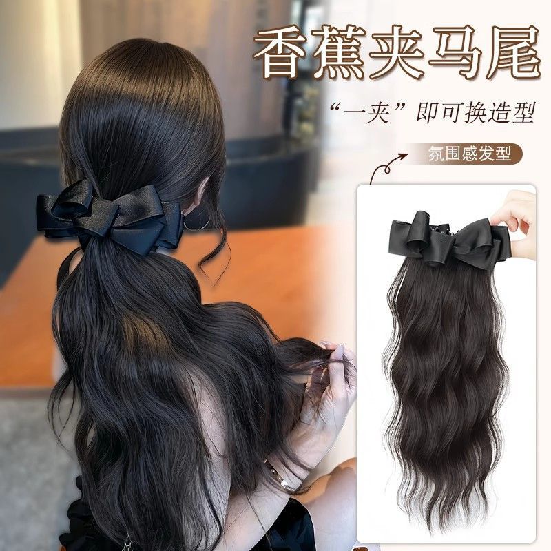 假发辫子女仿真发抓夹蝴蝶结卷马尾韩系自然增发量发饰假发辫马尾