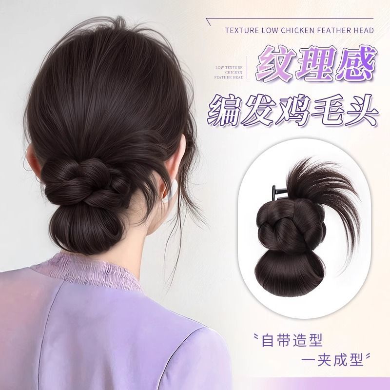 低めの丸いヘアピース、鶏毛風、ヘアクリップ付き、お団子ヘア、自然な質感、ヘアピース、お団子ヘア用ヘアリング
