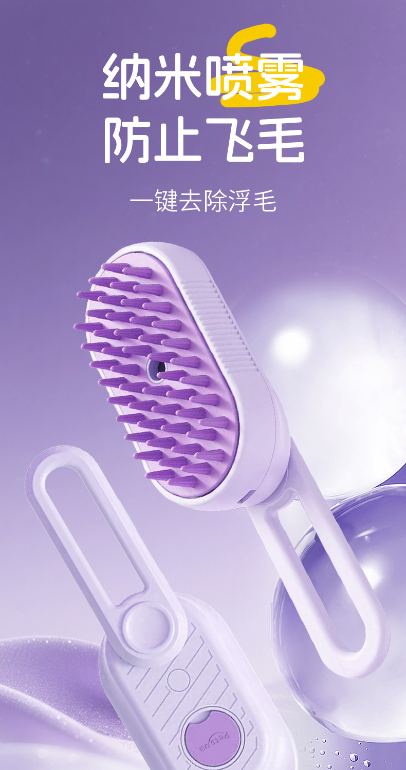 跨境宠物喷雾梳宠物蒸汽梳一键喷雾防飞毛梳猫咪狗狗梳子宠物用品