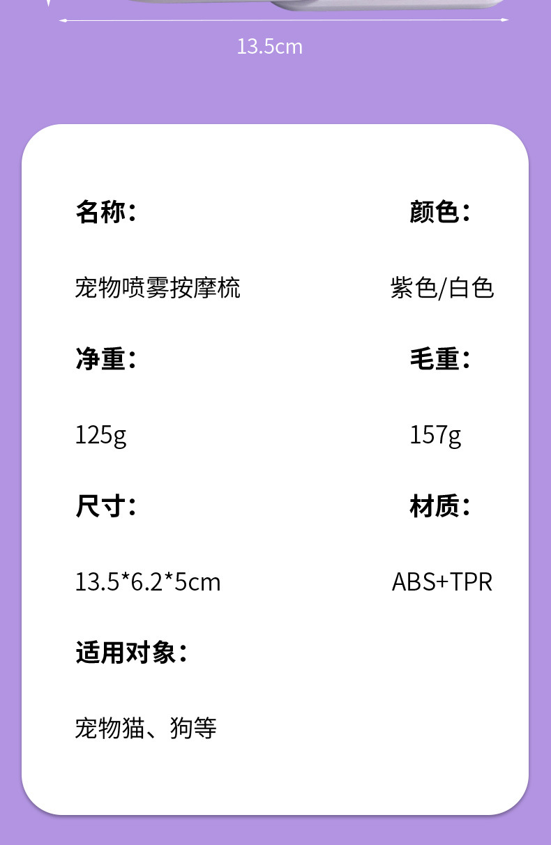 跨境猫梳子喷雾猫毛梳猫咪梳毛用狗毛宠物洗澡刷去浮毛神器狗狗用