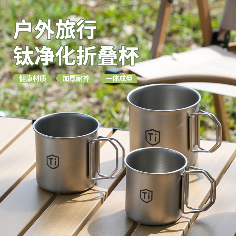 钛净化折叠水杯户外野餐专用抗菌便携加厚耐摔喝水咖啡马克水杯子