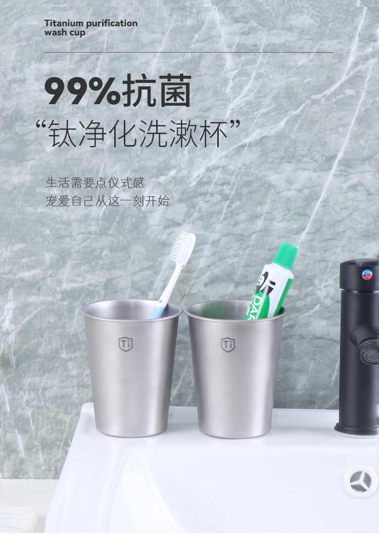 【卸売り】真純チタン嗽カップ高颜値家庭用洗面カップ純チタンカップ抗菌防かび歯磨きカップ