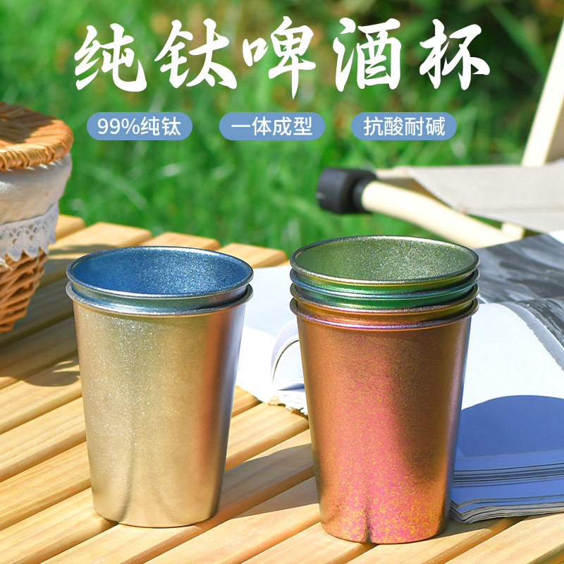 新款纯钛啤酒杯结晶户外露营水杯果汁单层高颜值钛杯随手杯批发