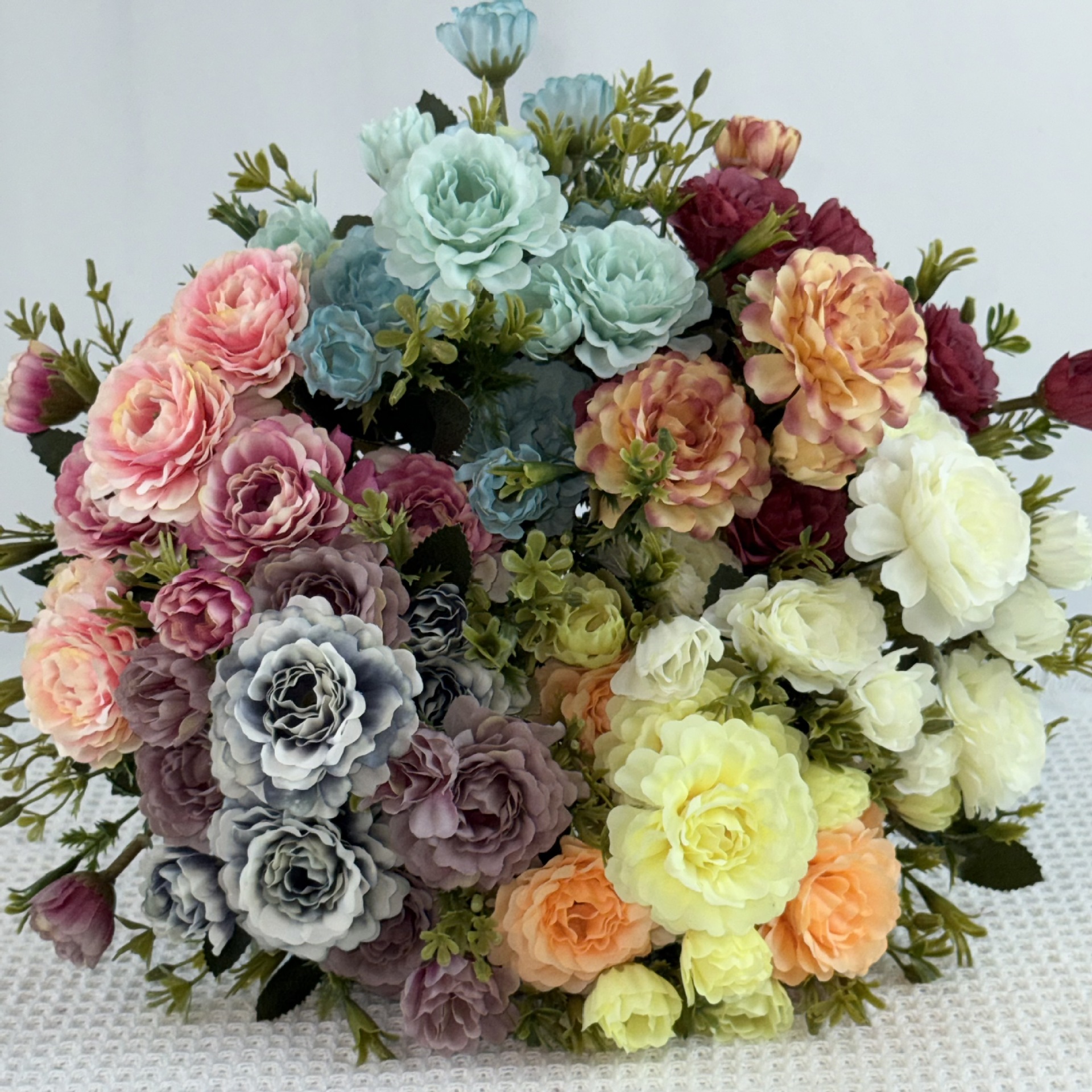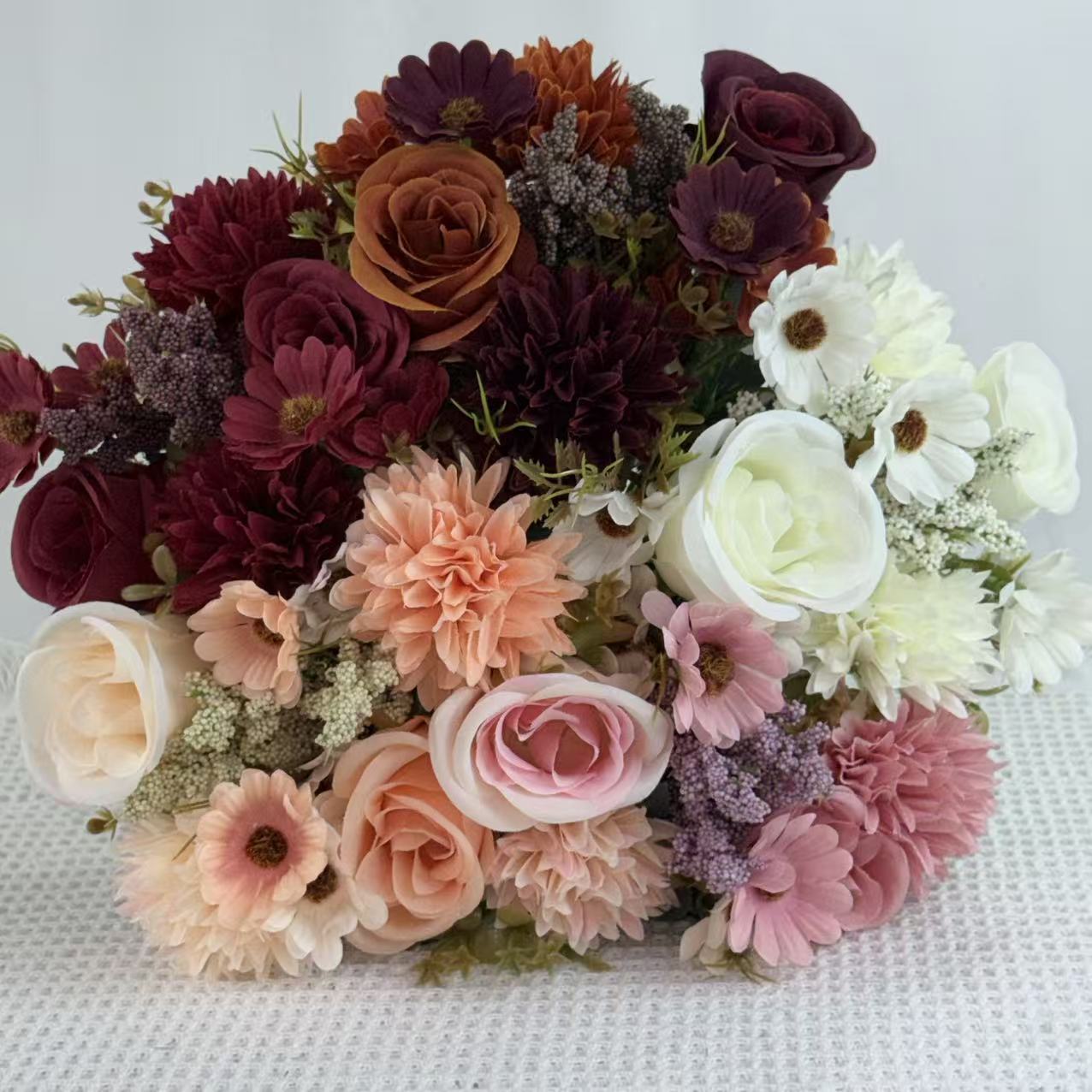 新款外贸批发亚马逊跨境爆款婚庆仿真花小把花玫瑰牡丹雏菊山茶花