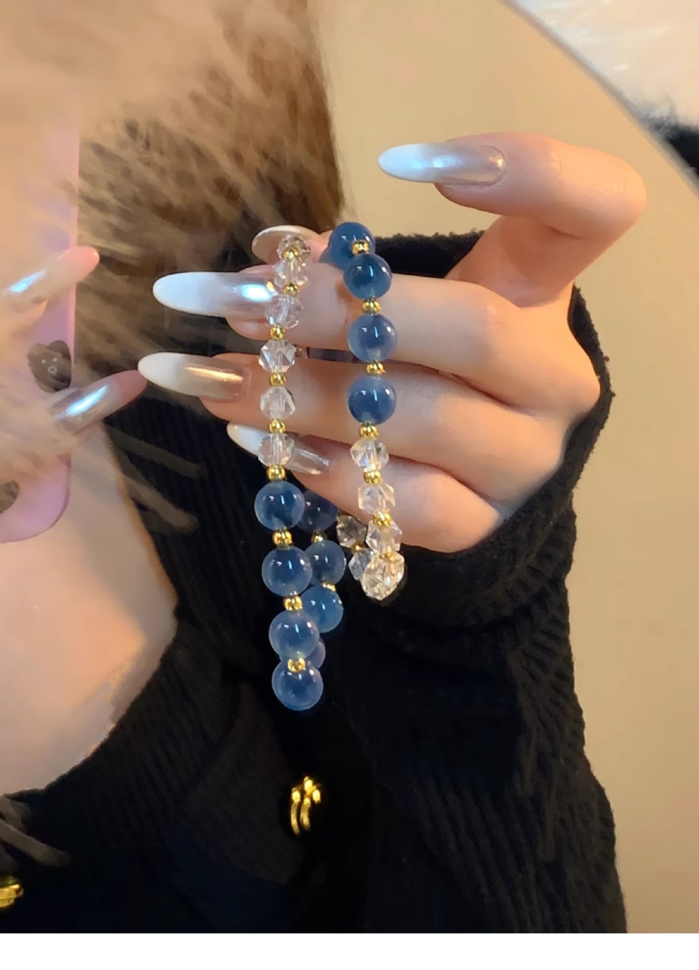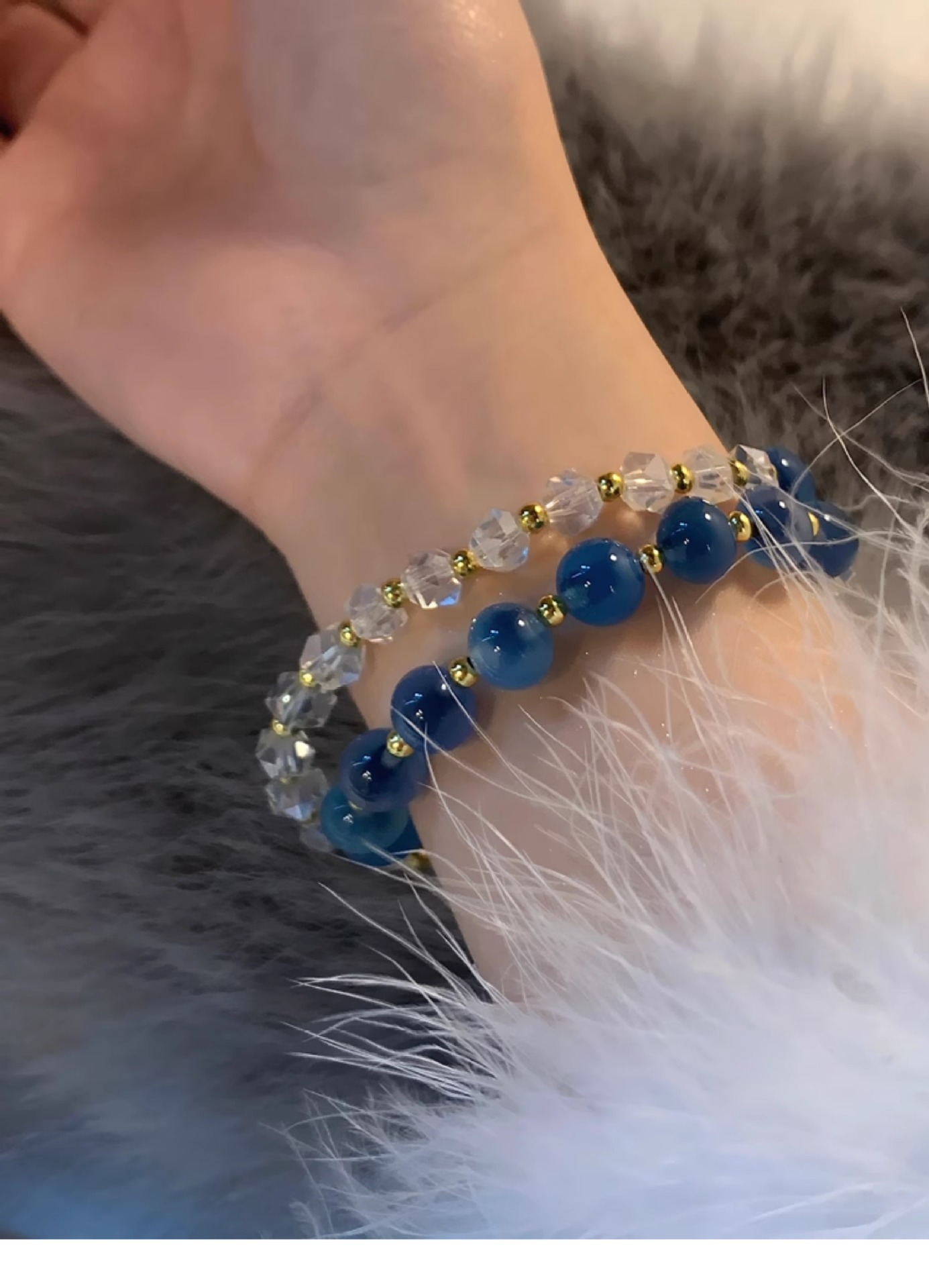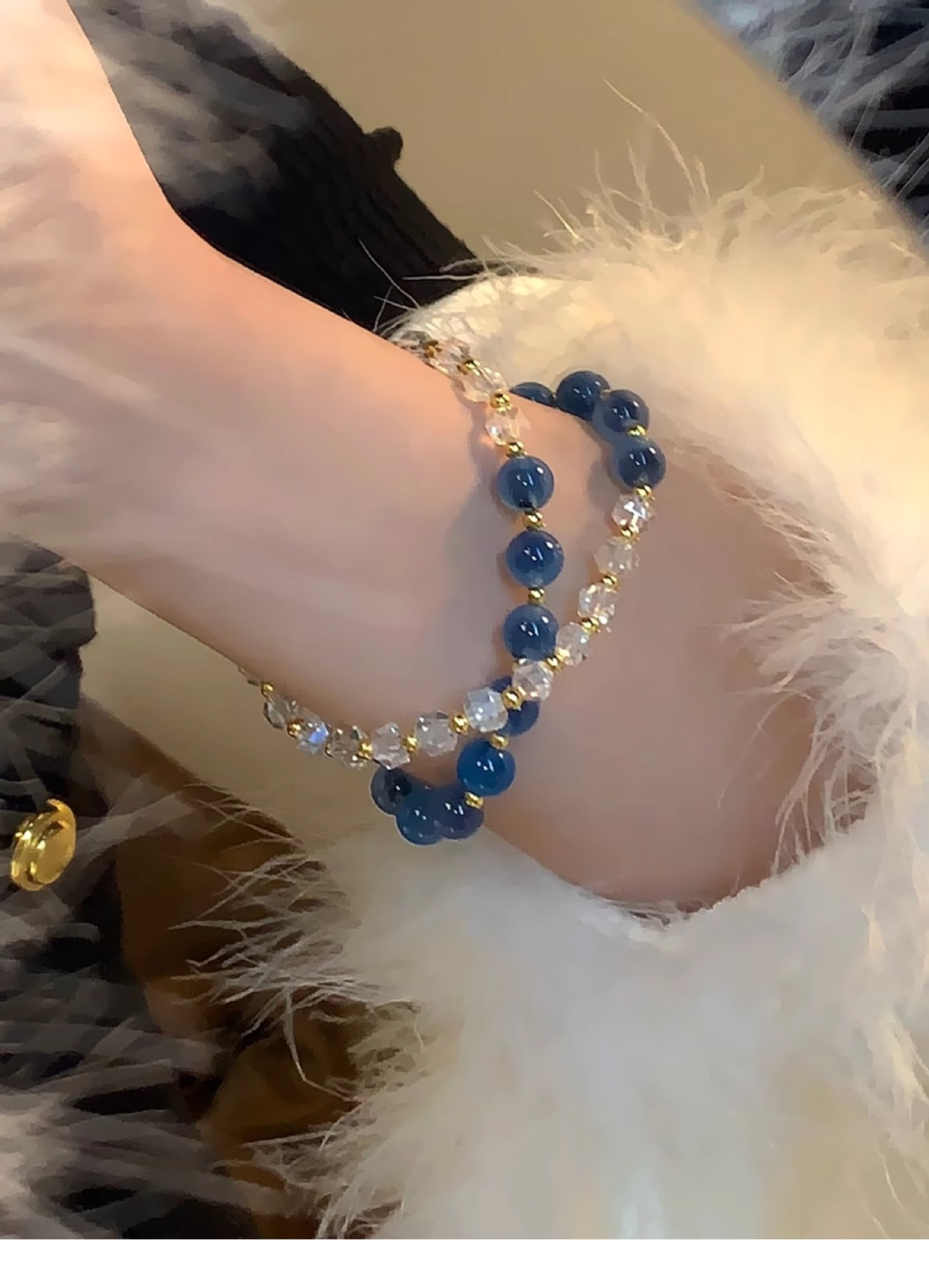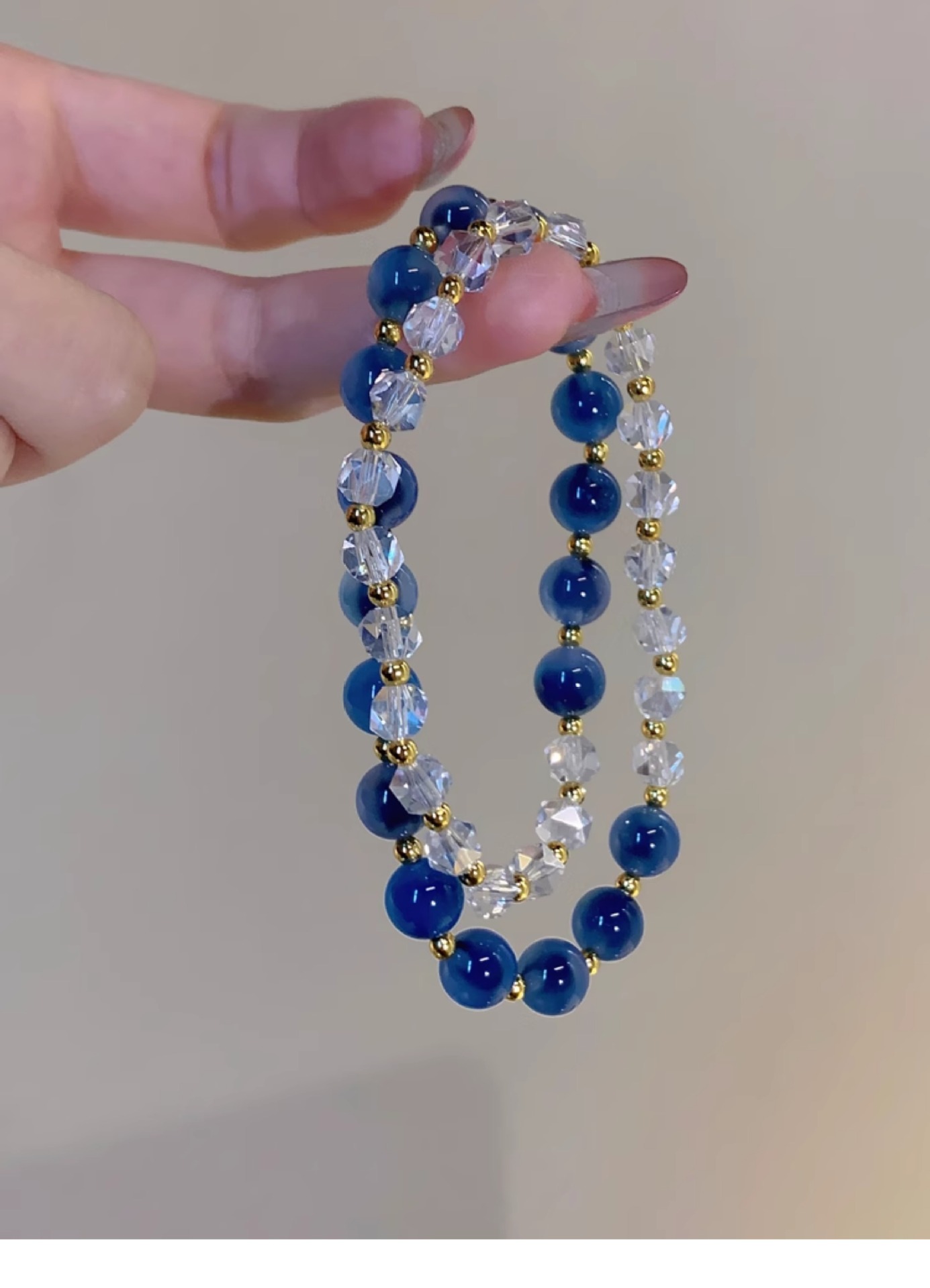 灰月光三生三世蓝宝多圈强蓝光三圈水晶手链女轻奢精致小众设计款