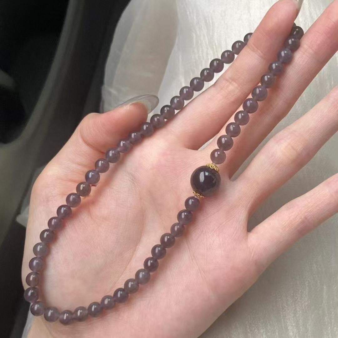 灰のブレスレット、模造Hetian Yuyan紫色のニッチな二重サークルブレスレット、紫色の気質、多用途で豪華な幸運のトルマリンブレスレット