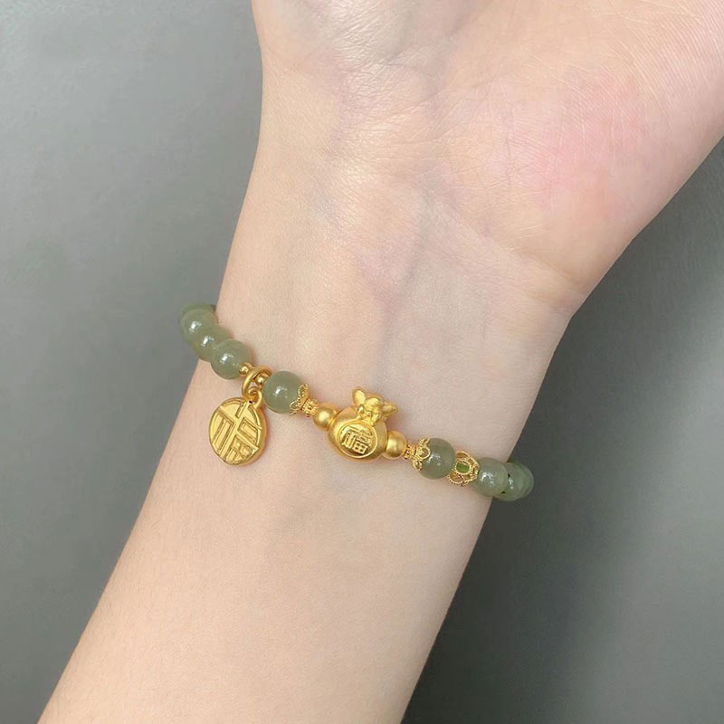福袋のブレスレットの女性は和田玉の小さい福のブランドの福の字の新しい中国式の中国風の手の串をまねて彼女の娘の蜜の手の装飾を送ります。