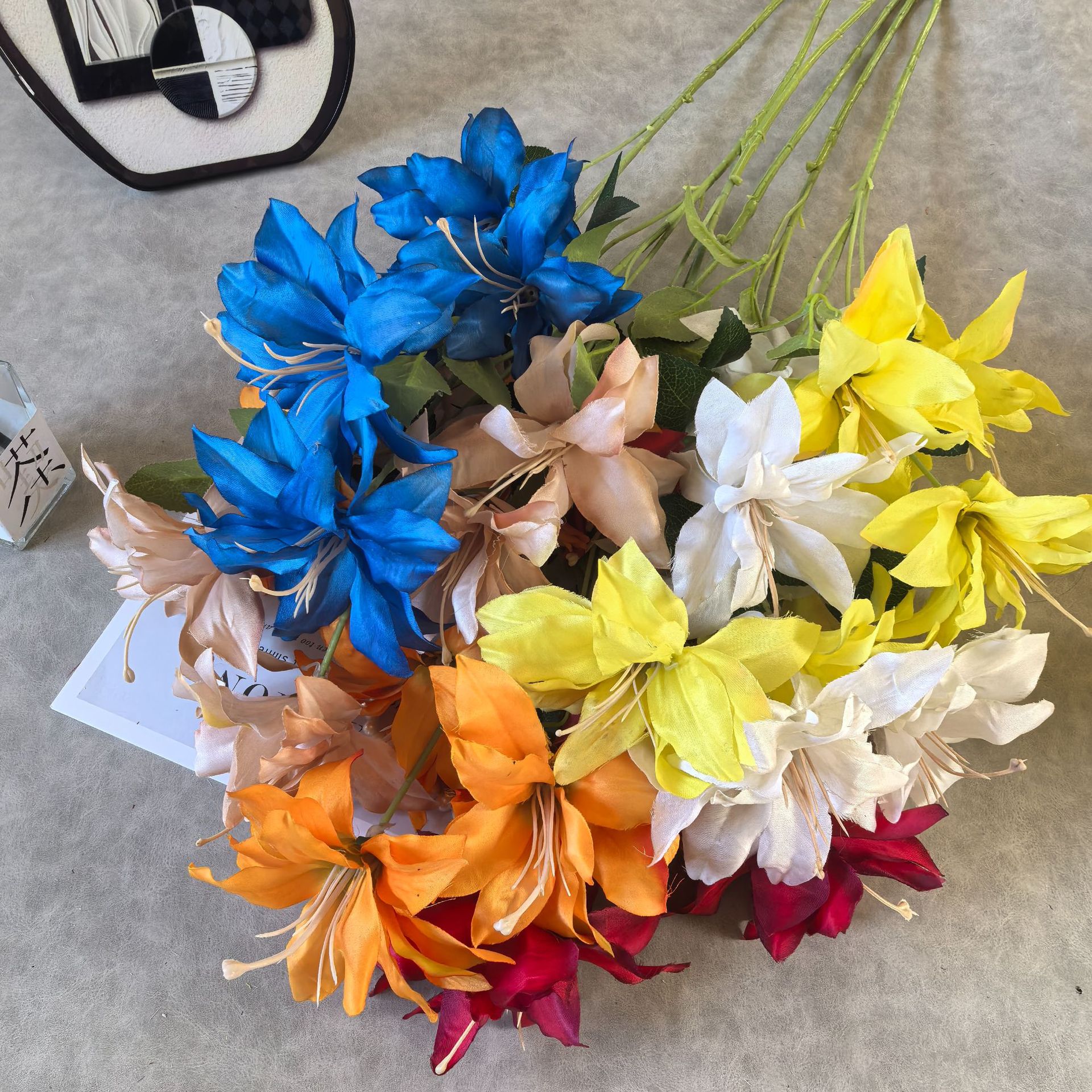 5头百合仿真花 婚庆婚礼礼堂吊顶装饰家居摆设仿真花花束摄影道具
