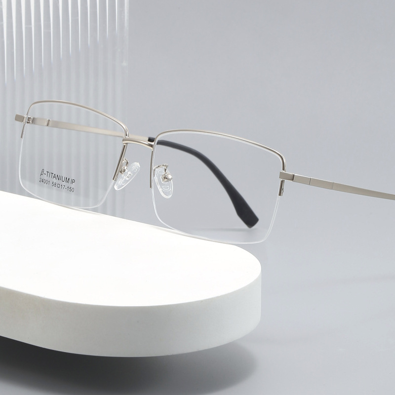 新款无磁钛超轻近视眼镜架男半框大脸配度数金丝商务防蓝光眼睛框