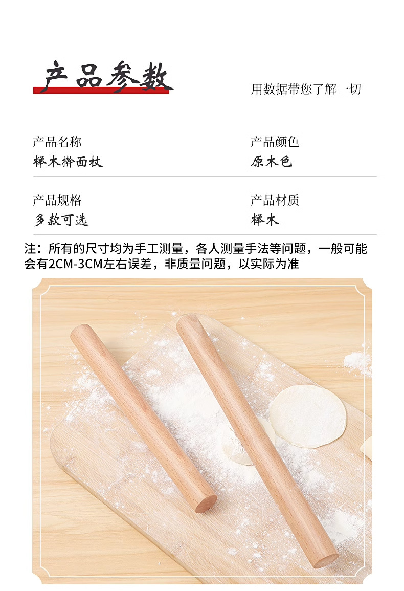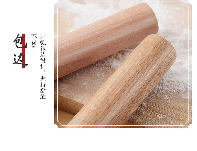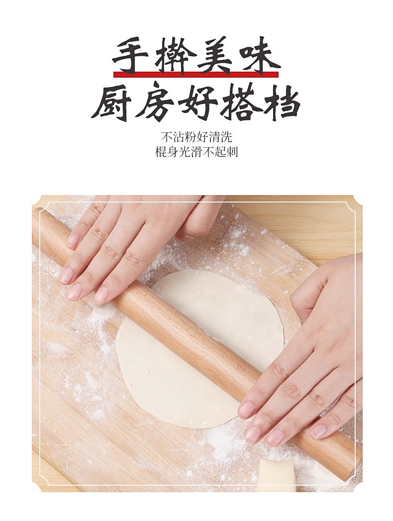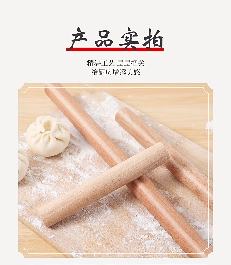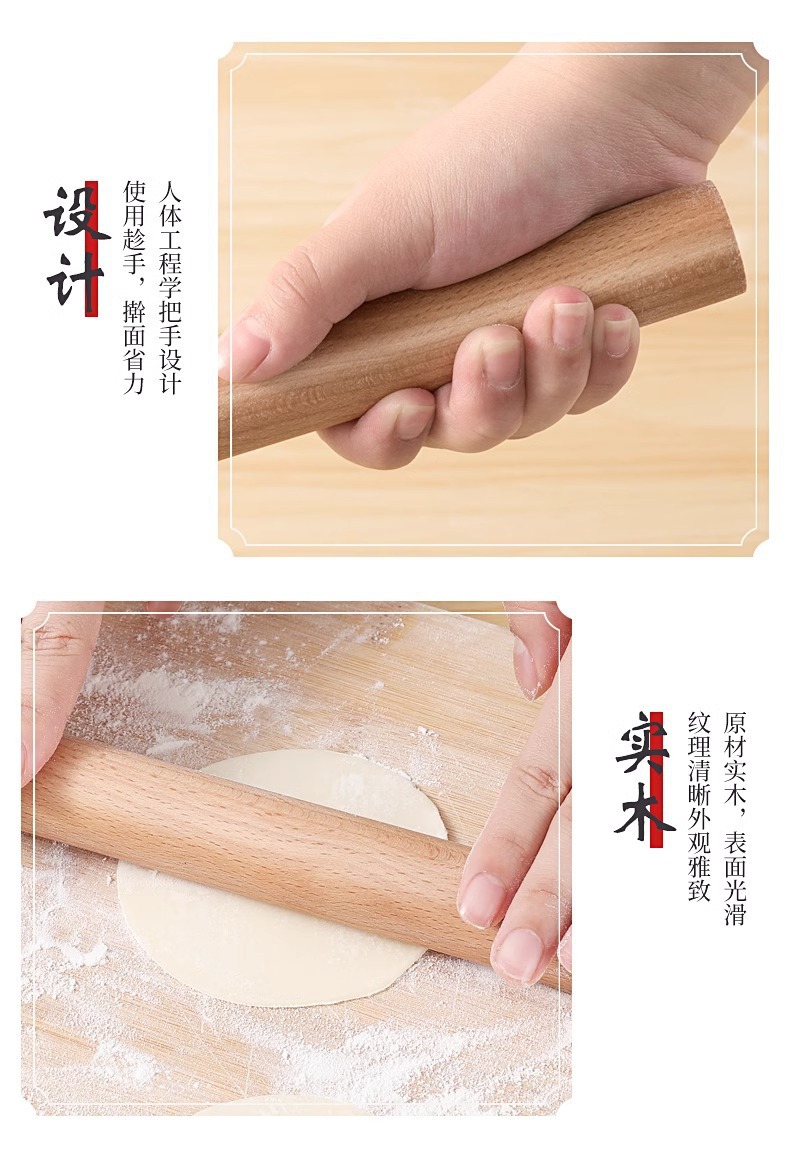 天然ブナ材麺棒、無垢材大小各種麺棒、家庭用餃子皮麺棒、麺棒、ベーキングツール